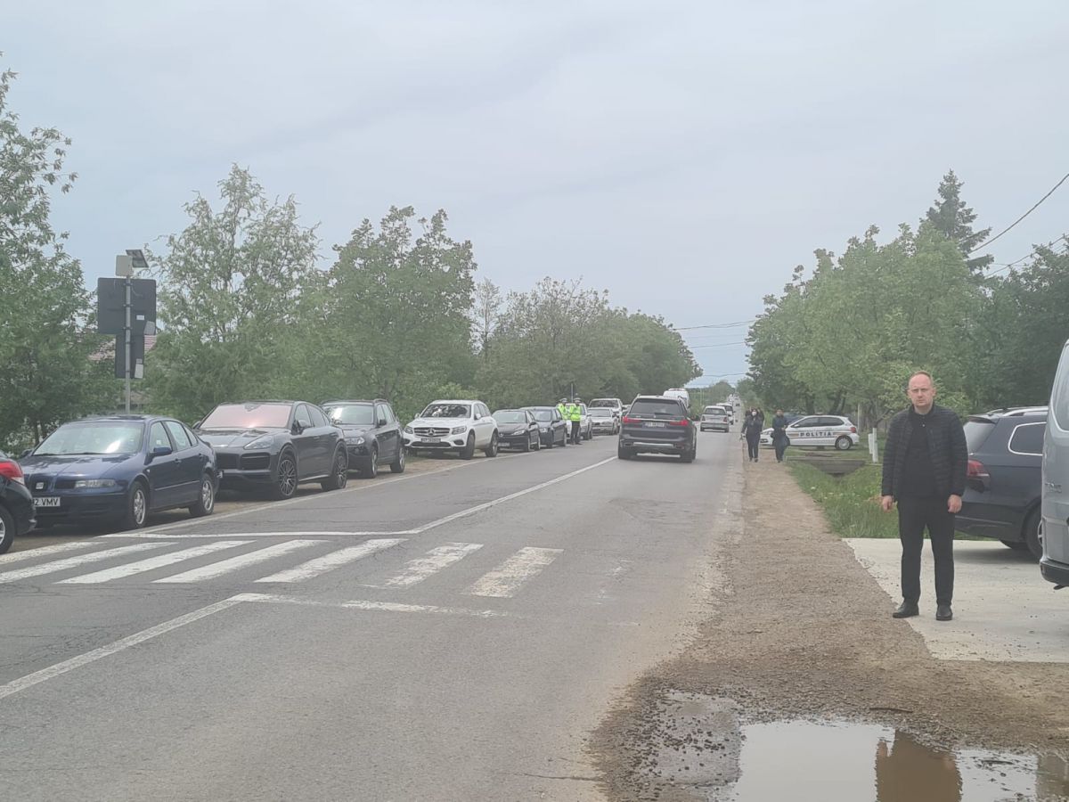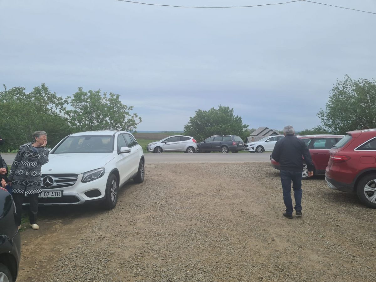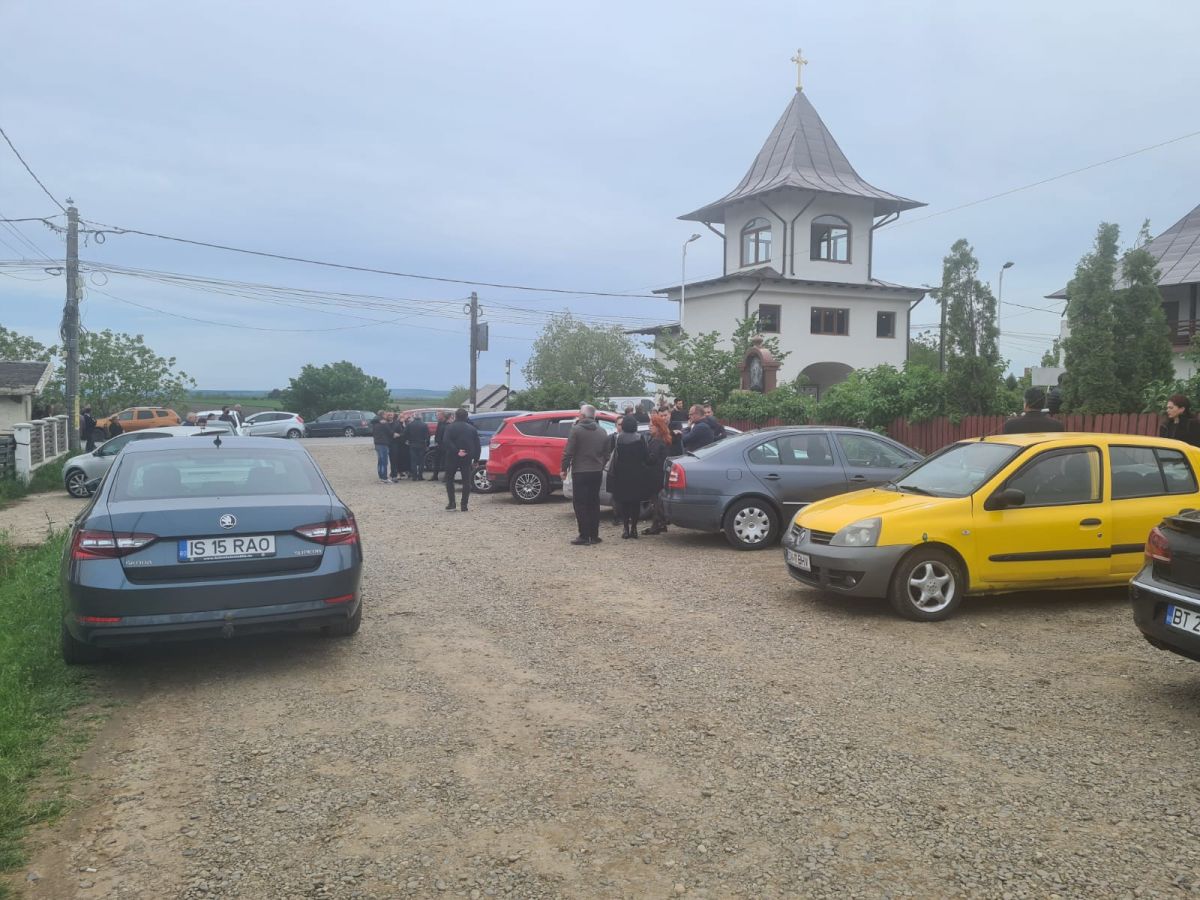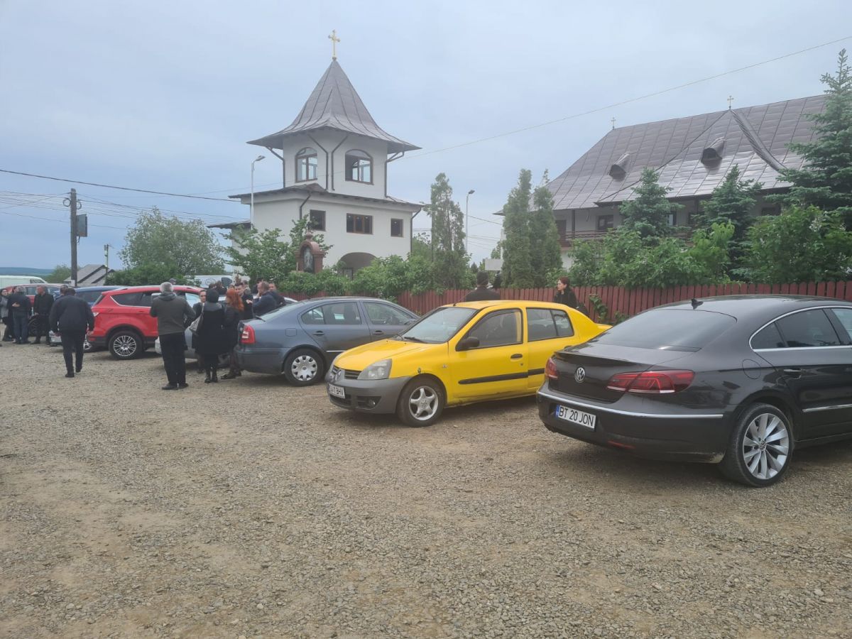 Sunt zeci de mașini parcate în jurul bisericii, dar și pe marginea drumului național care duce spre Dorohoi, iar oamenii continuă să vină.