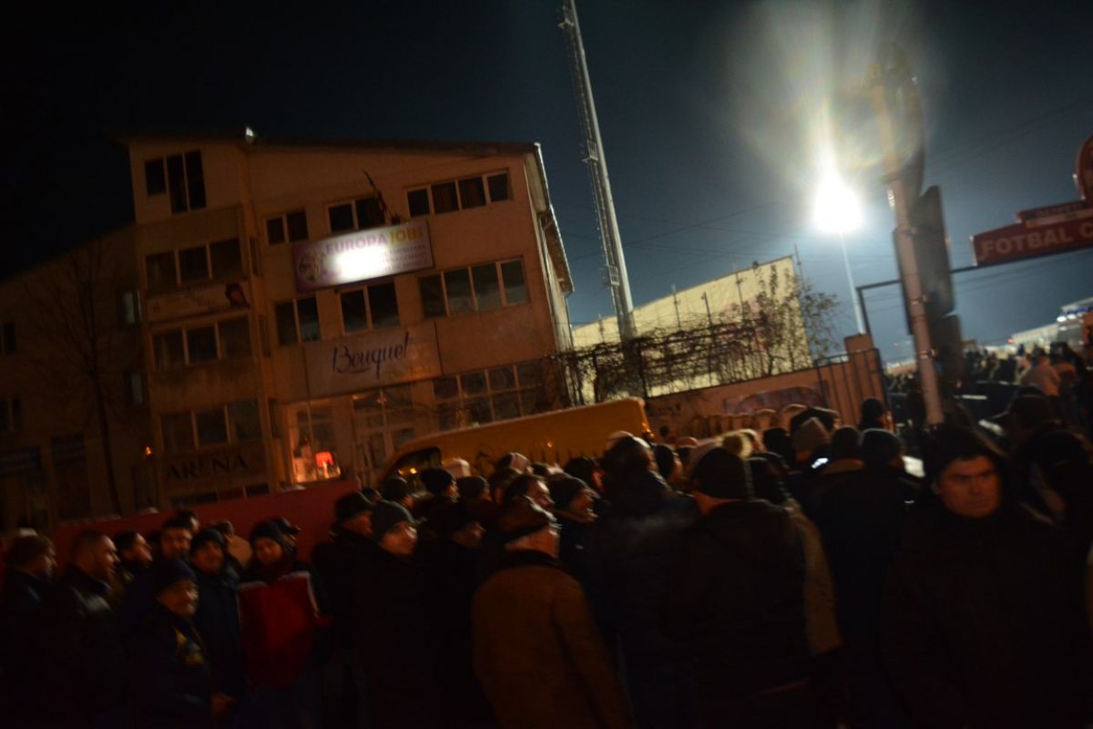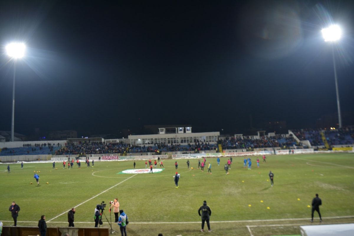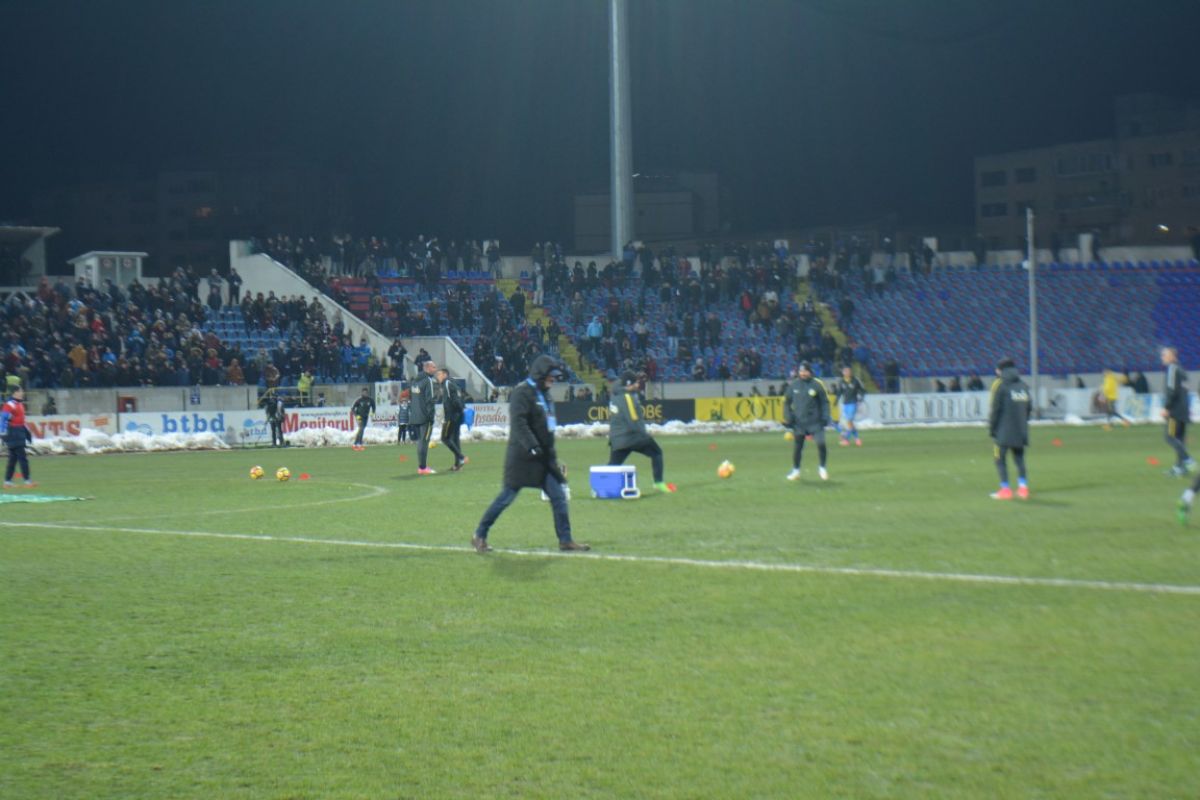 Pe arenă se află deocamdată în jur de 5.000 de spectatori, fiind ocupate cele două tribune și două sectoare din peluza Ion Bordeanu.