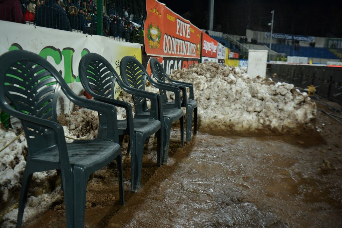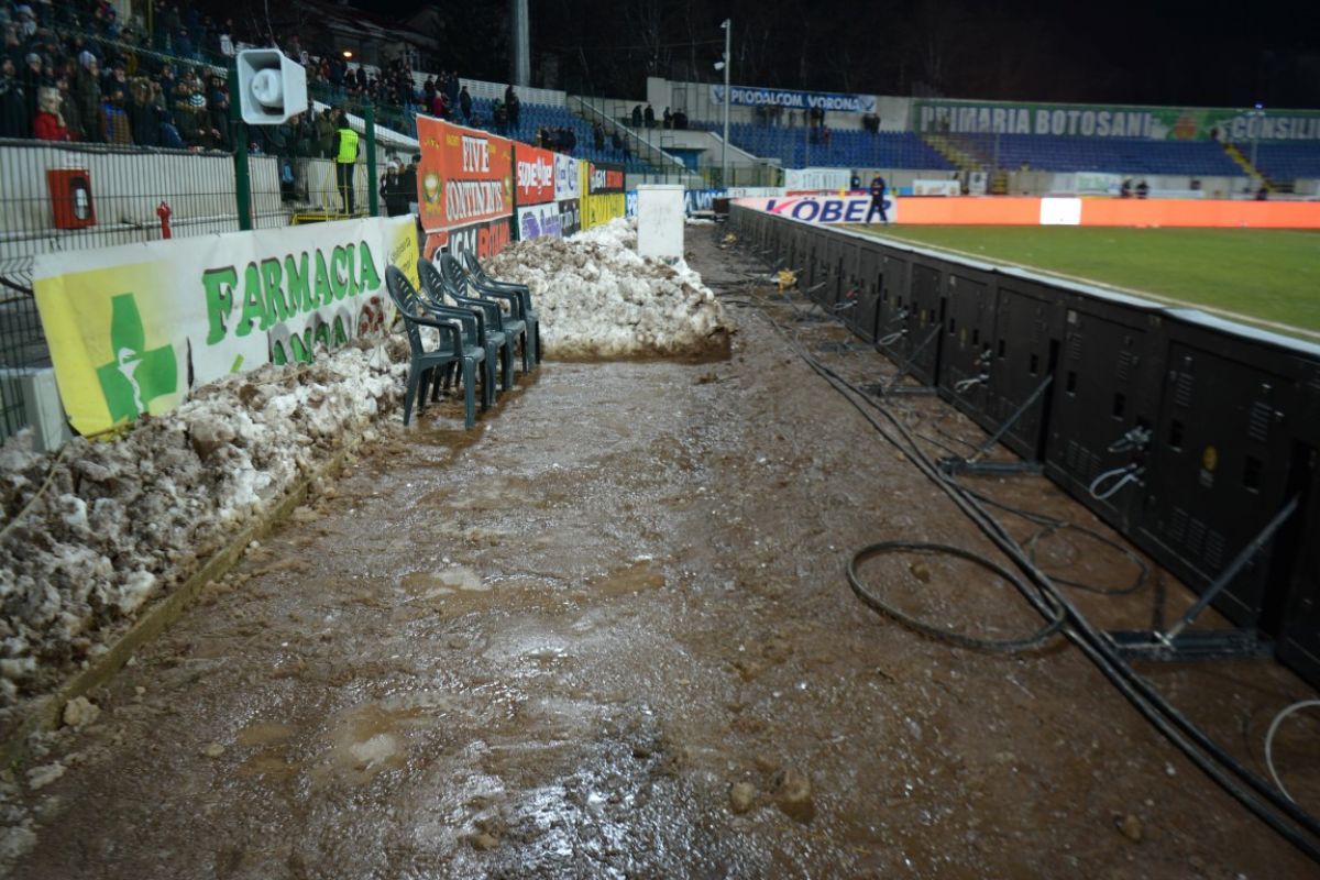Terenul este o combinaţie de gheaţă şi noroi, degajat totuşi de zăpadă căzută după miezul nopţii.