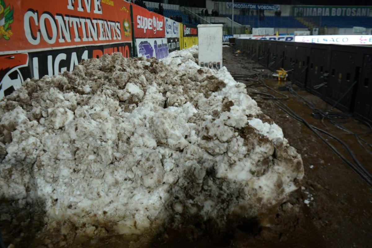 De altfel, grămezi serioase de zăpadă se află pe pista de atletism.