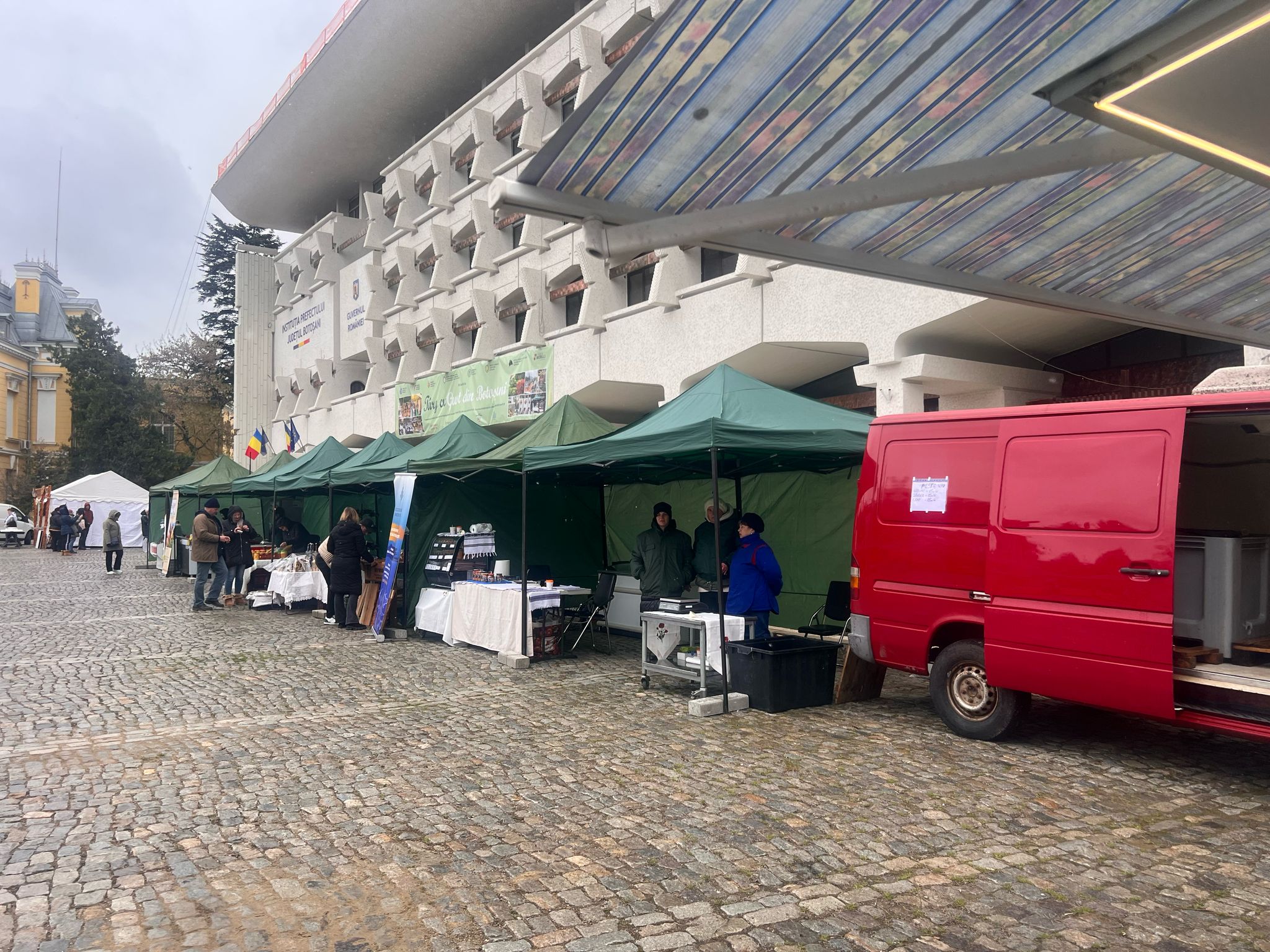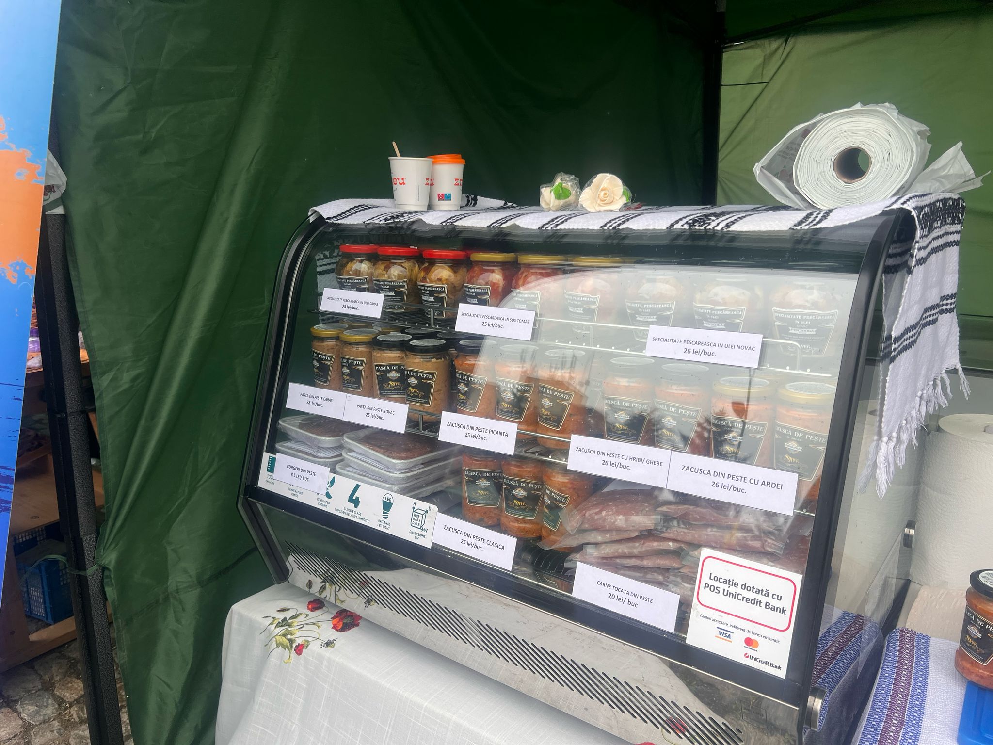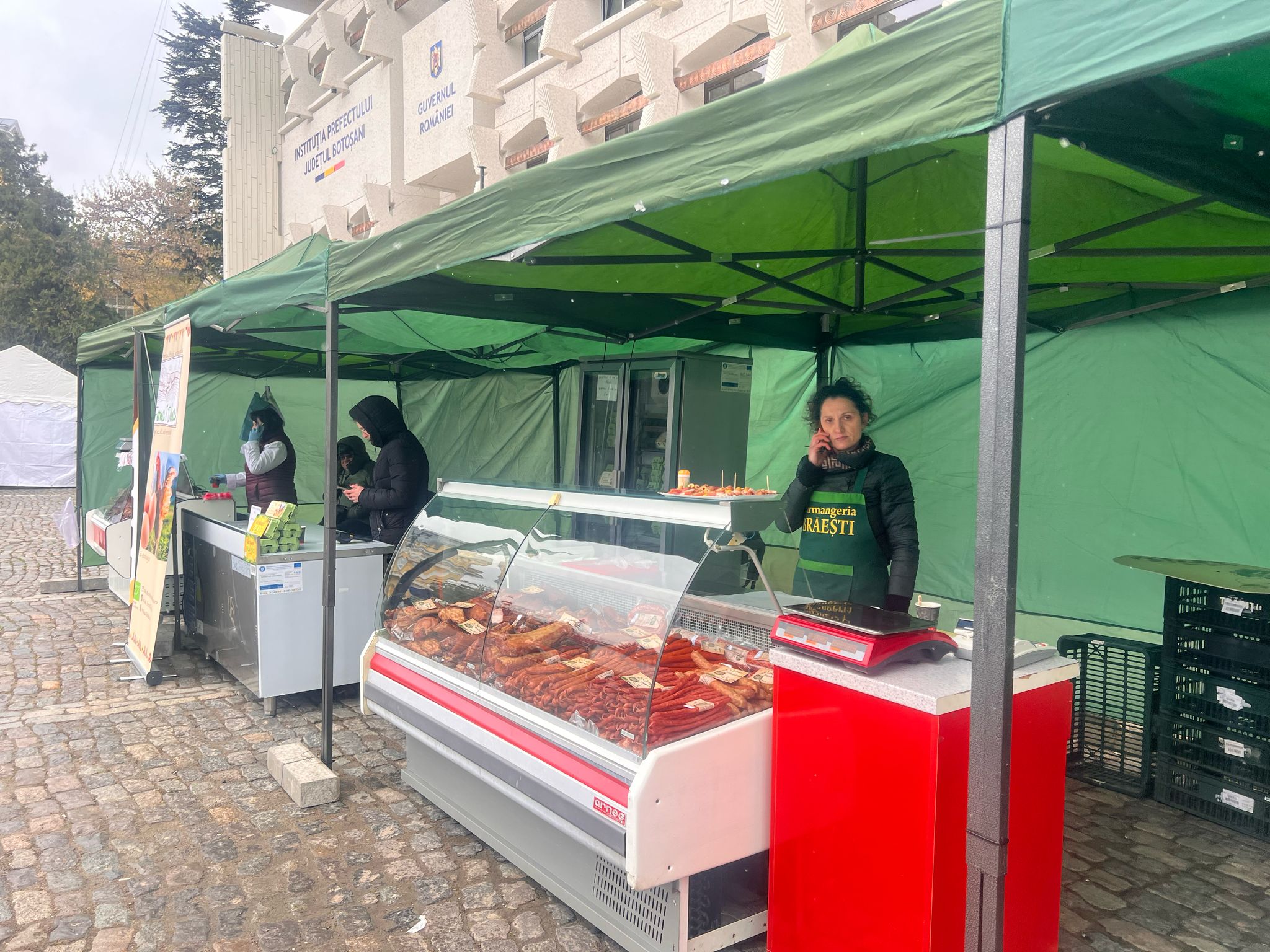 În Piața Revoluției de la Botoșani au fost amenajate peste 20 de standuri cu tot felul de produse. De la pește, legume, miere, sucuri naturale până la produse din patiserie, brânzeturi, ouă sau mezeluri.