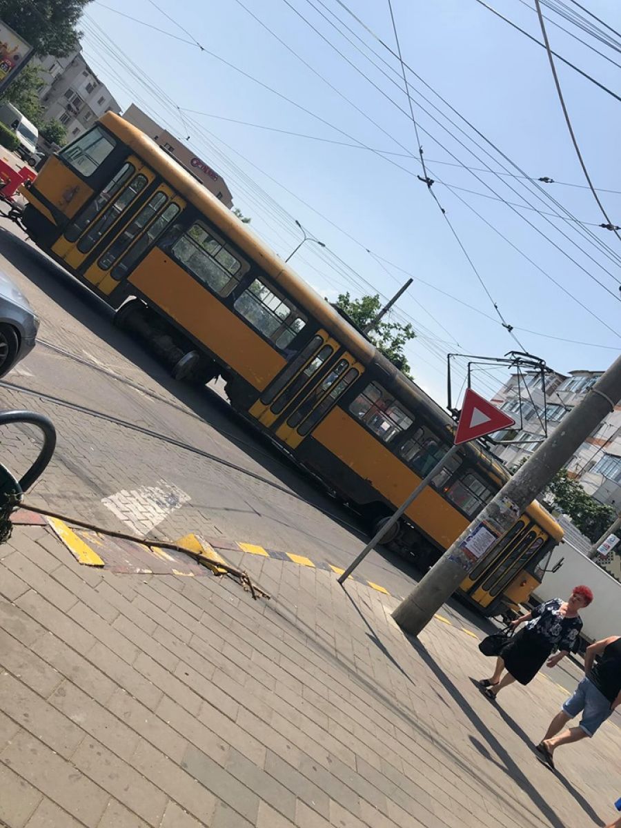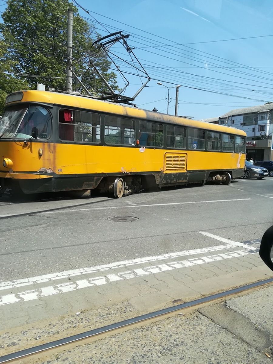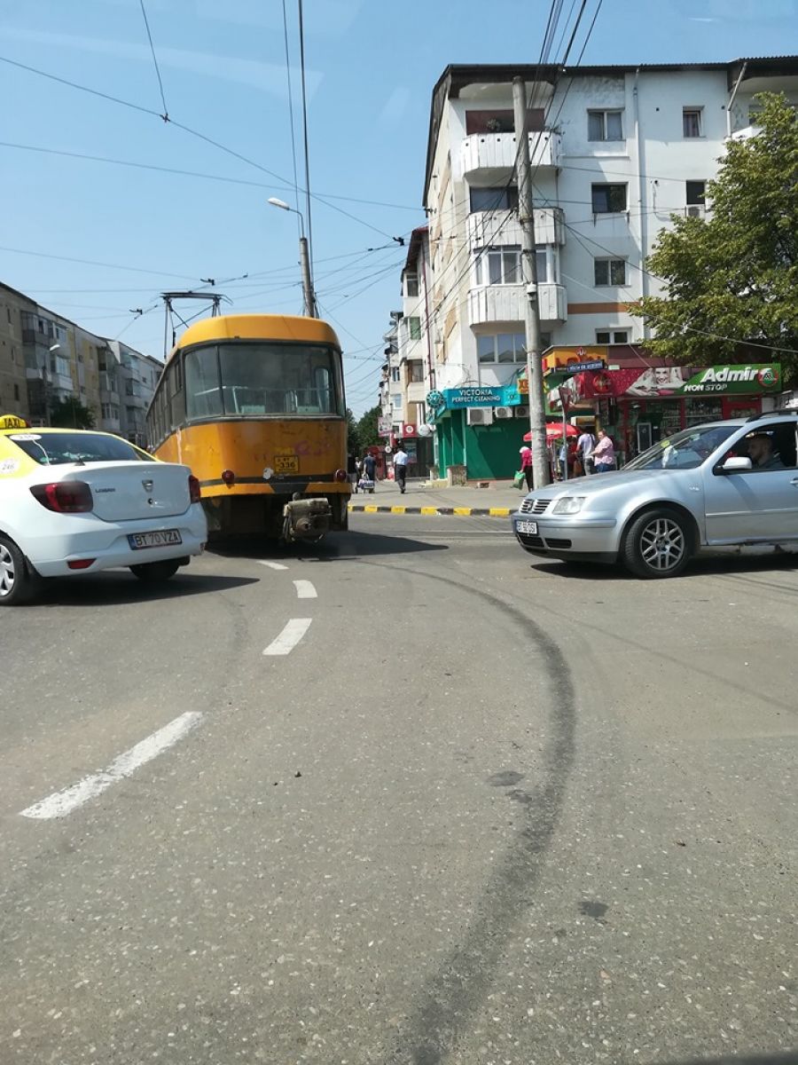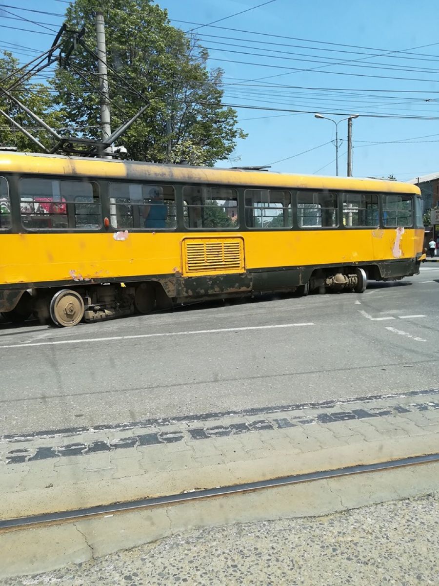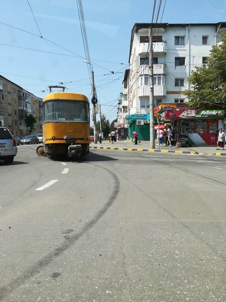 Şi asta pentru că, un tramvai a deraiat şi a sărit din nou de pe şine, şoferii fiind nevoiţi să-l ocolească.