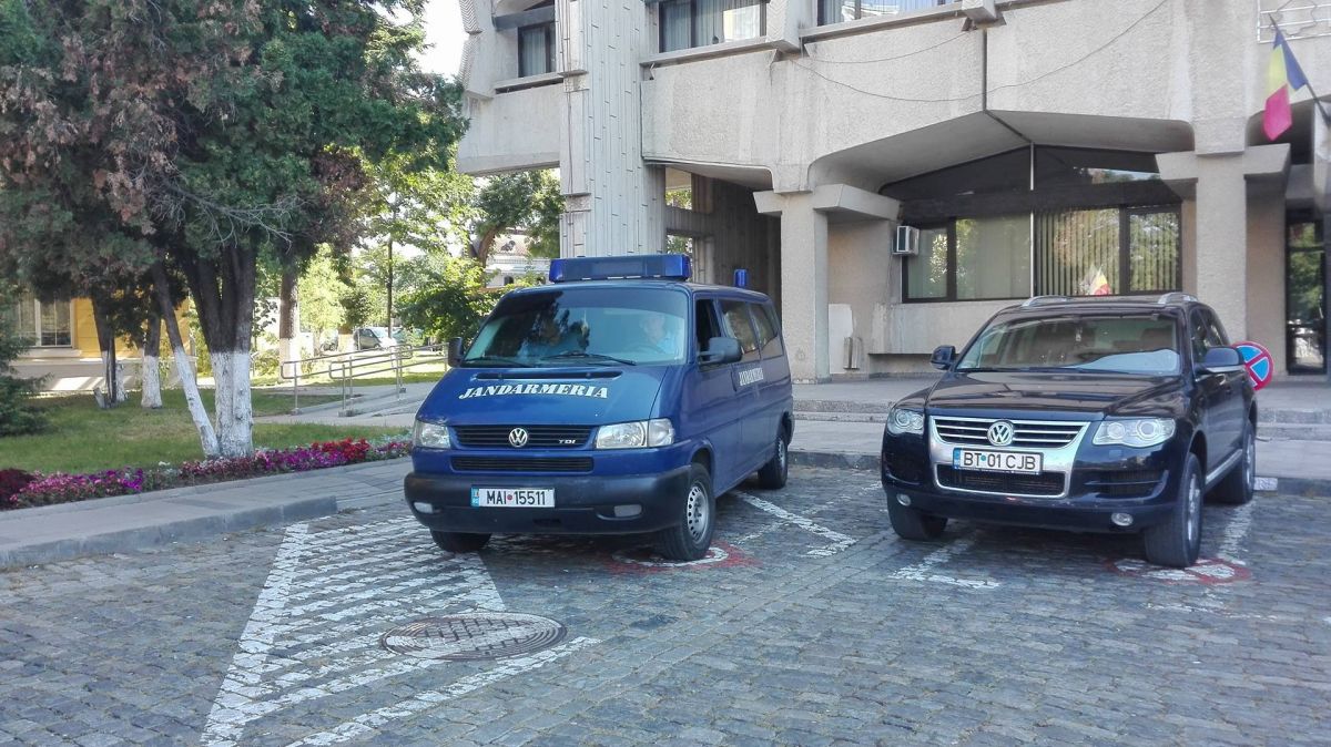 Pentru protecția lui în fața Prefecturii a ajuns și un echipaj de jandarmi.