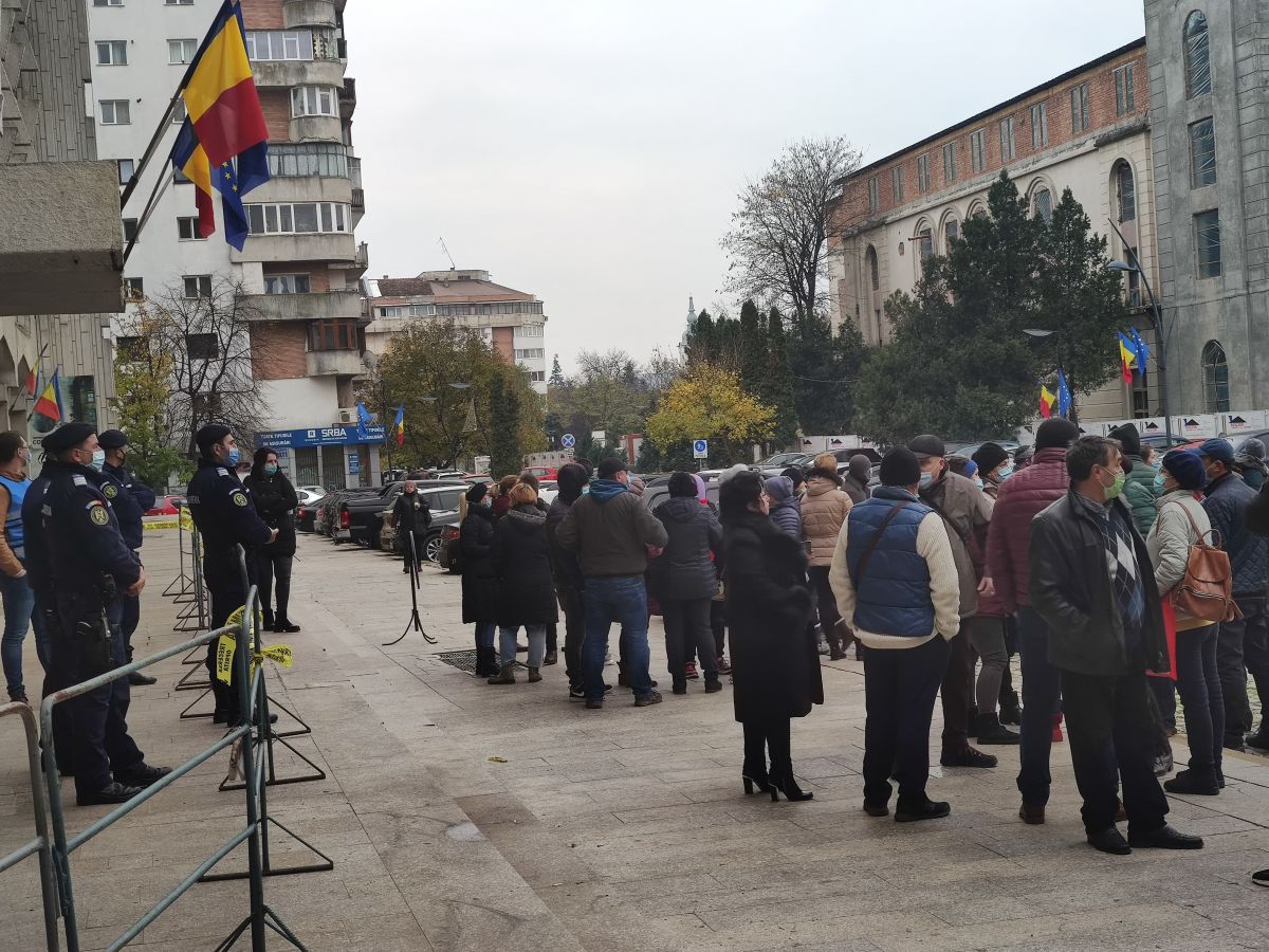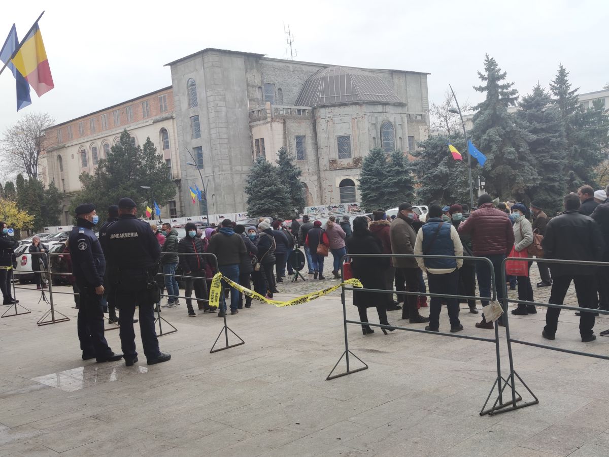 În zonă sunt prezenți mai mulți jandarmi, în fața Palatului Administrativ montându-se garduri mobile.