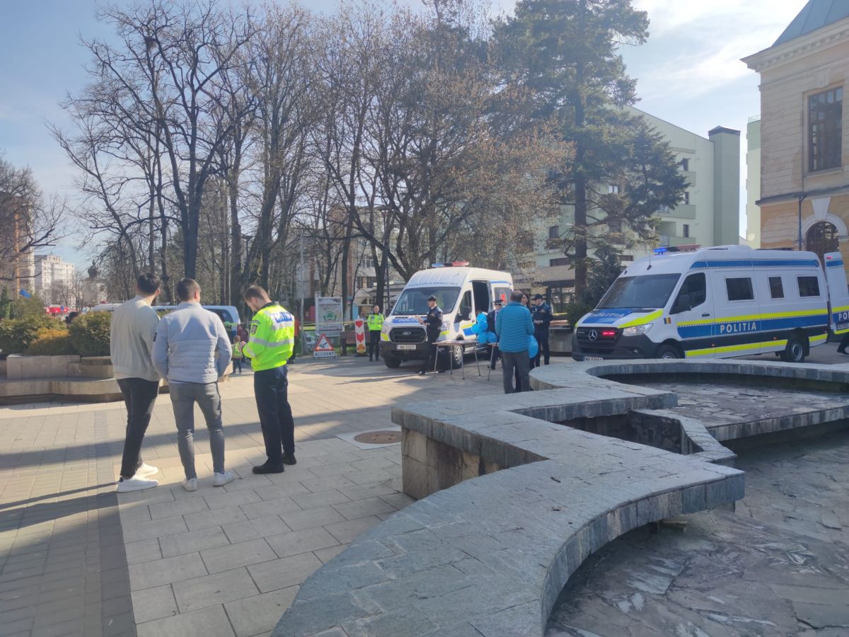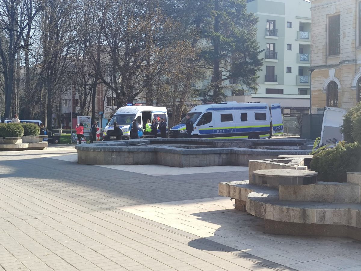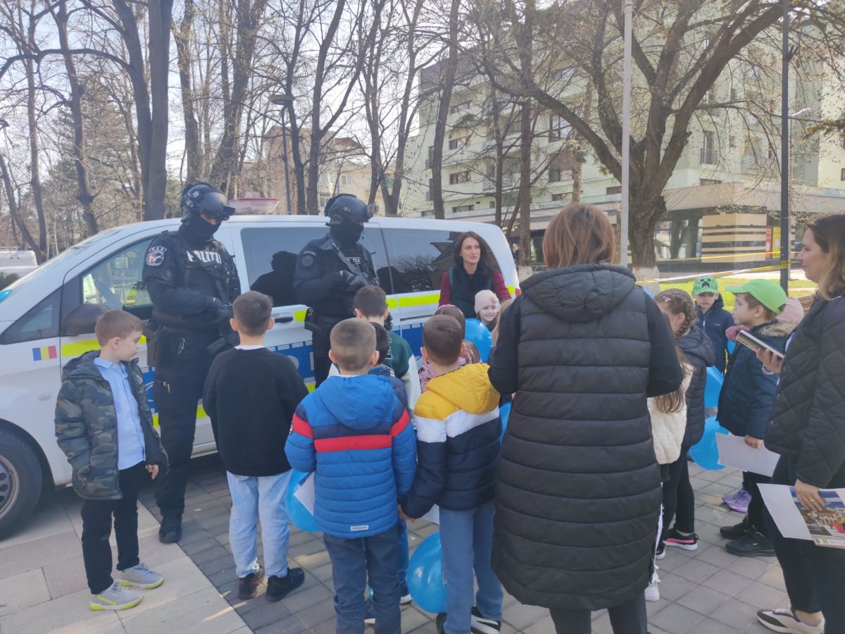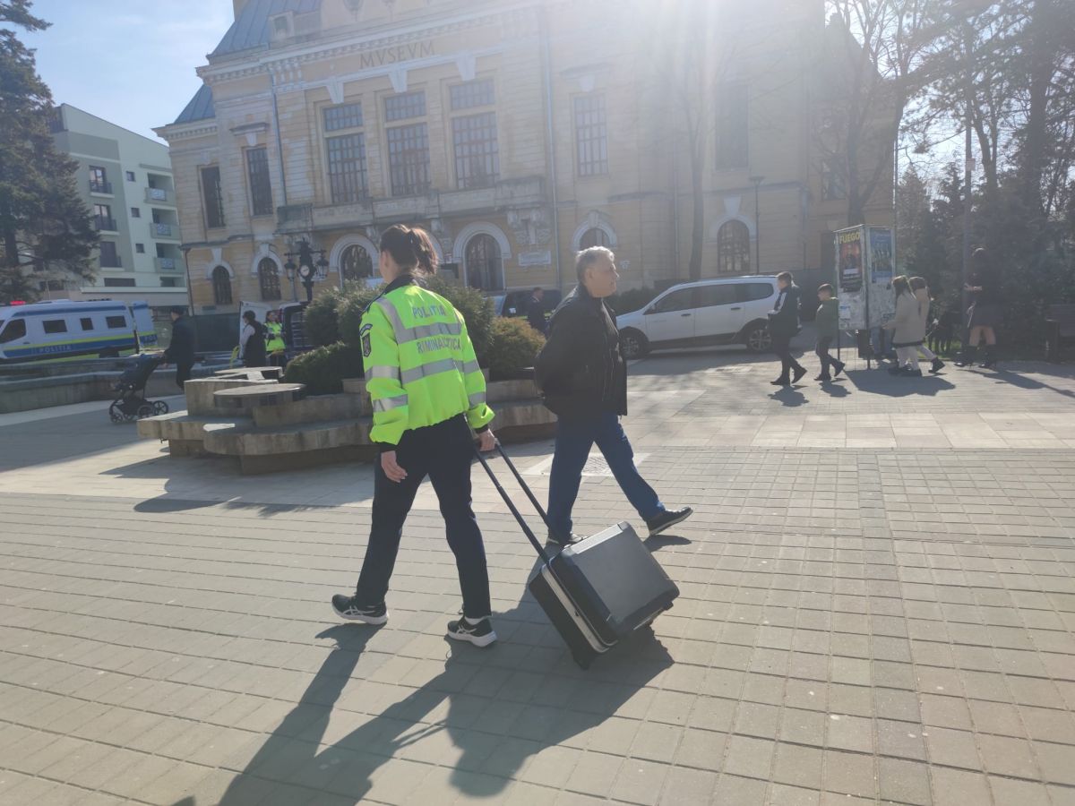 Iar asta în ciuda vremii favorabile de afară, care ar fi permis polițiștilor să ofere spectacolul dorit mai ale de micii privitori pentru că pe Pietonal a ajuns și o clasă de copii.