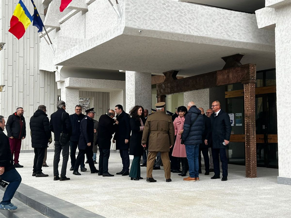 Sunt prezente oficialitățile în frunte cu prefectul Sorin Cornilă și președintele Consiliului Județean Doina Federovici, primarul Cosmin Andrei, viceprimarul Bogdan Buhăianu, parlamentari și câțiva directori de deconcentrate.