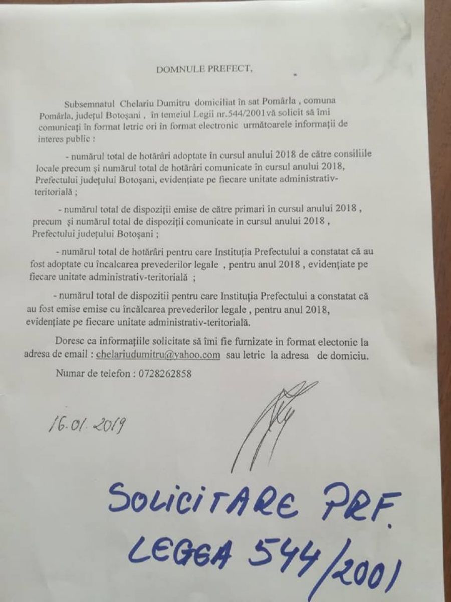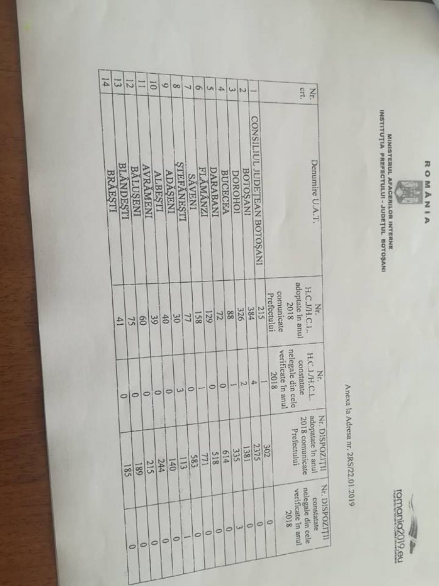 Un primar din județul Botoșani nu a transmis în anul 2018 Instituției Prefectului, nicio Hotărâre de Consiliu Local.