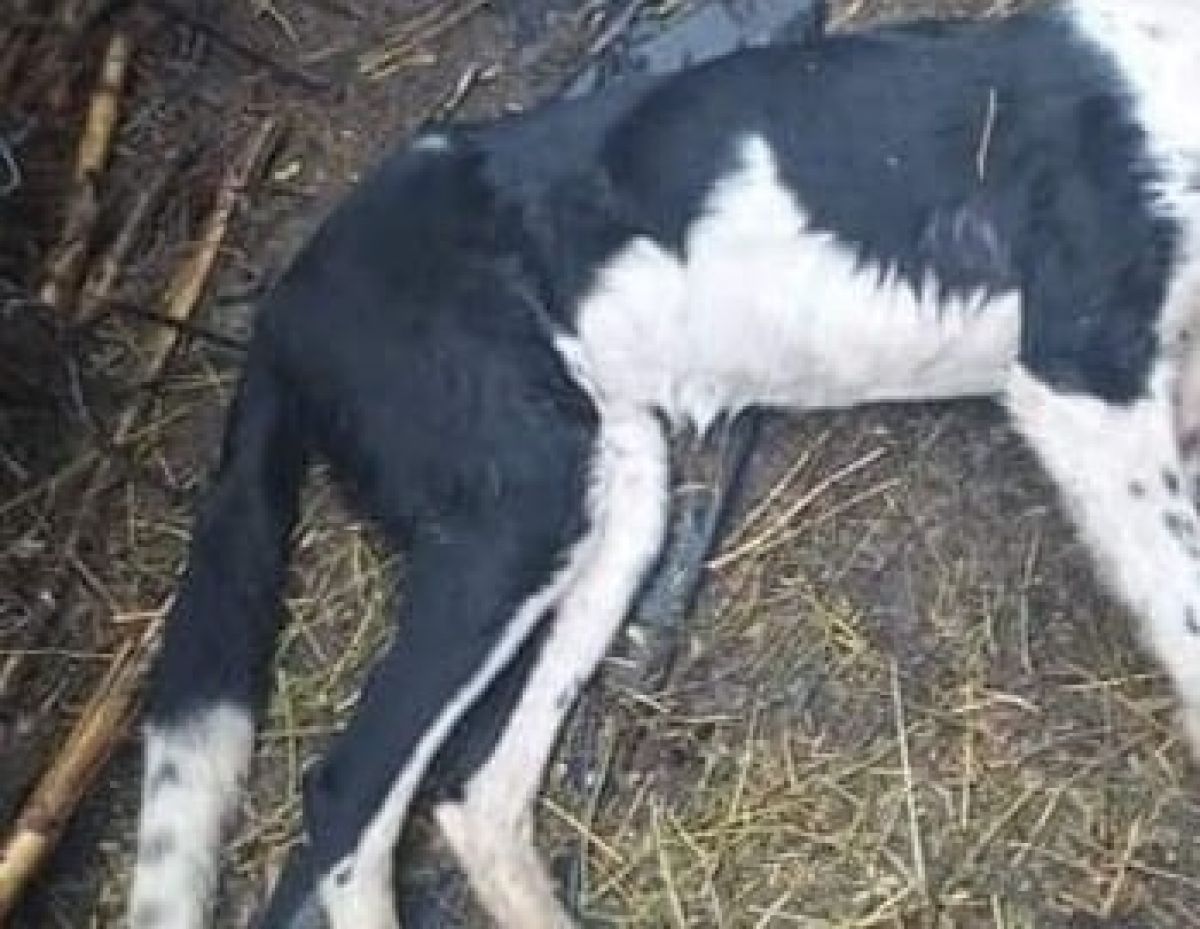 Câinele rănit a fost găsit în apropierea unor case. A fost îngrijit, însă nu a supraviețuit.