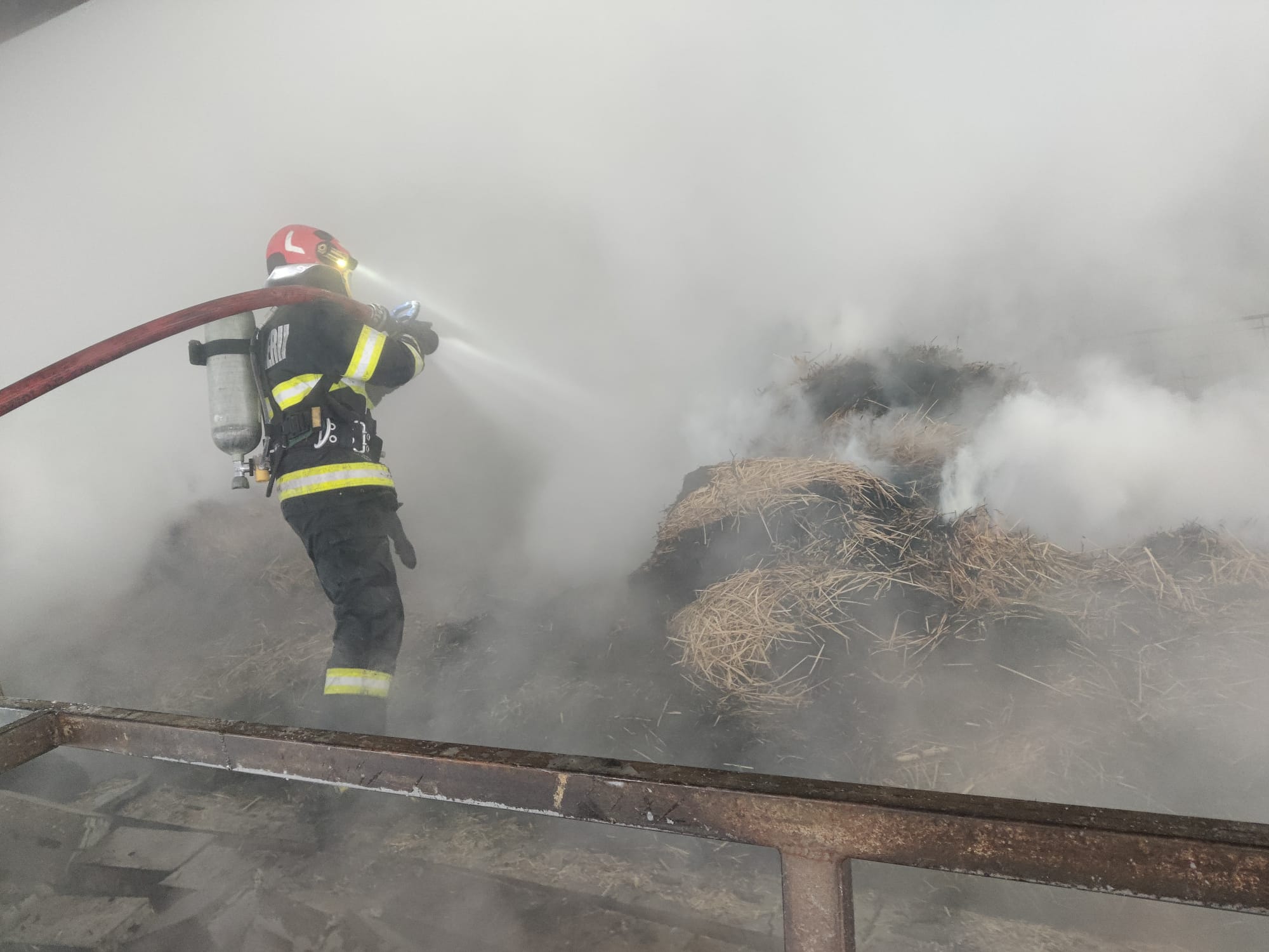 Pentru stingerea incendiului și înlăturarea efectelor acestuia s-a intervenit timp de peste două ore. Misiunea a fost una dificilă, având în vedere cantitatea mare de furaje care ardea, dar și necesitatea verificării fiecărui metru pătrat pentru eliminarea riscului de reaprindere.