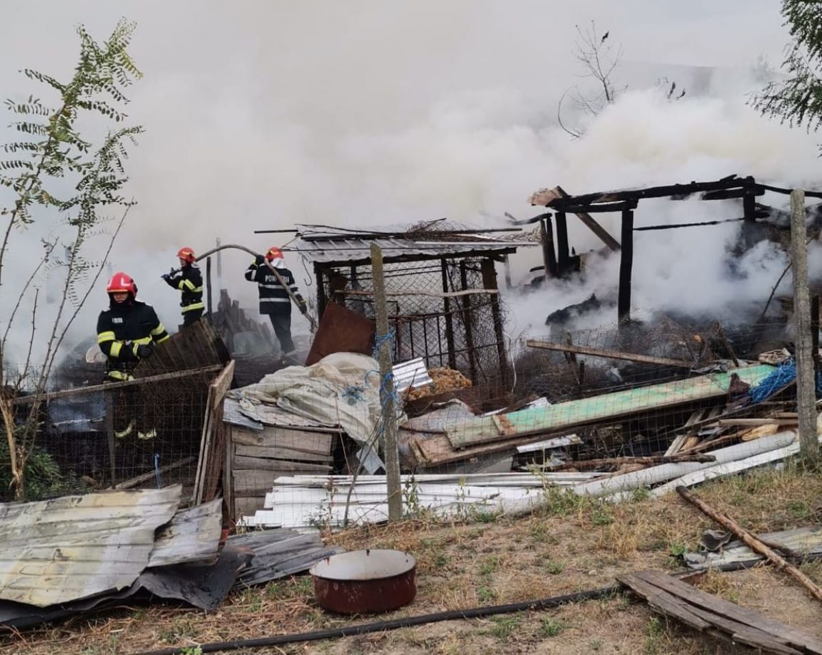 Un incendiu violent a izbucnit, aseară, într-o gospodărie din localitatea Băiceni, unde un adăpost de animale și un depozit de furaje au fost cuprinse de flăcări, cel mai probabil, din cauza unui scurtcircuit.