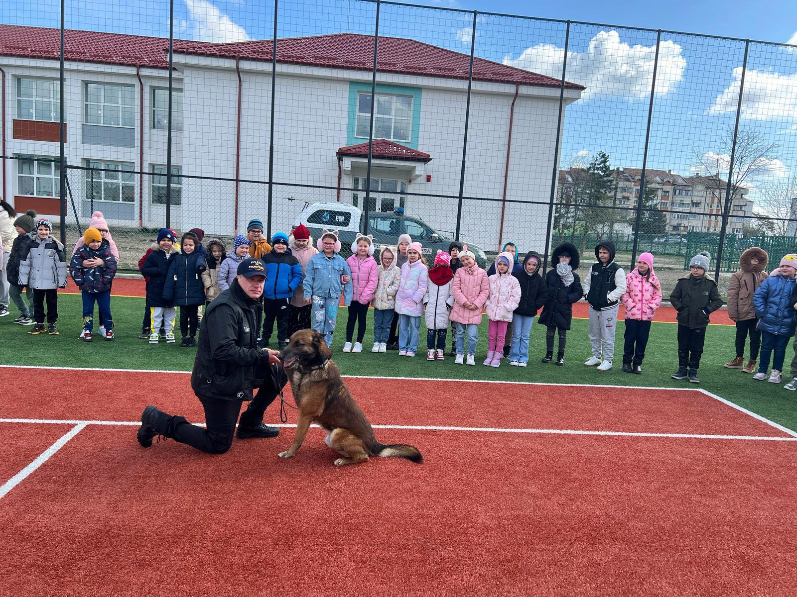 Polițiștii de frontieră dorohoieni alături de câinii de serviciu Adar și Goia au desfășurat ieri o activitate demonstrativă la Școala Generală AI Cuza Dorohoi, având ca scop promovarea rolului instituției în societate și conștientizarea importanței respectării legii în rândul elevilor.