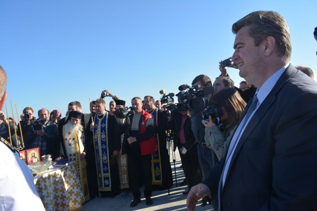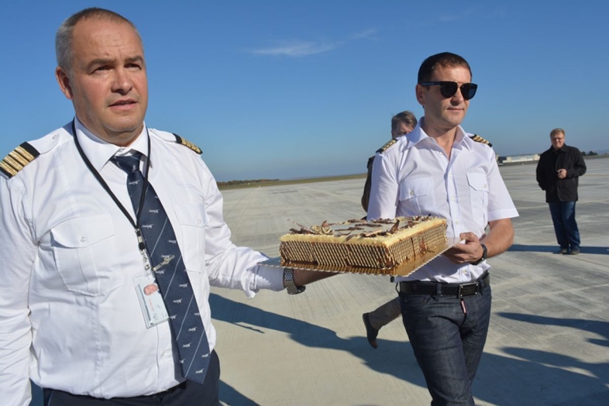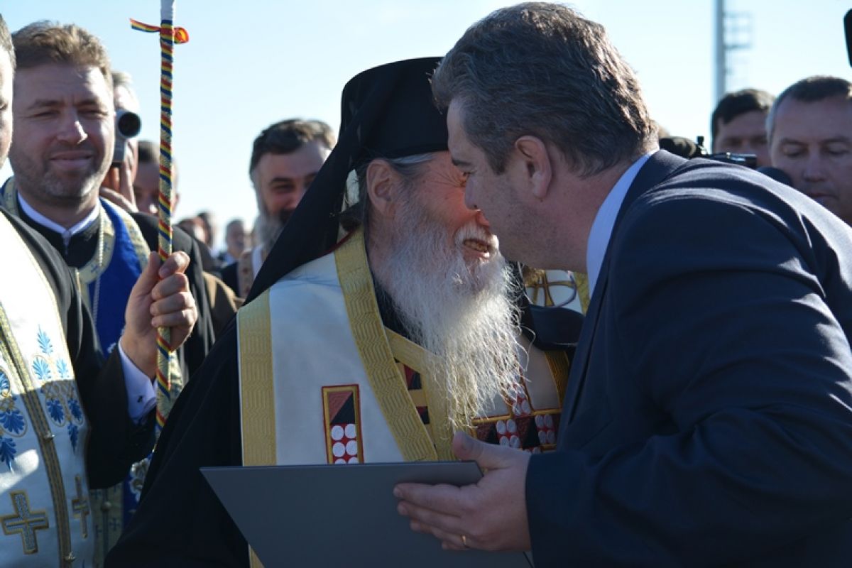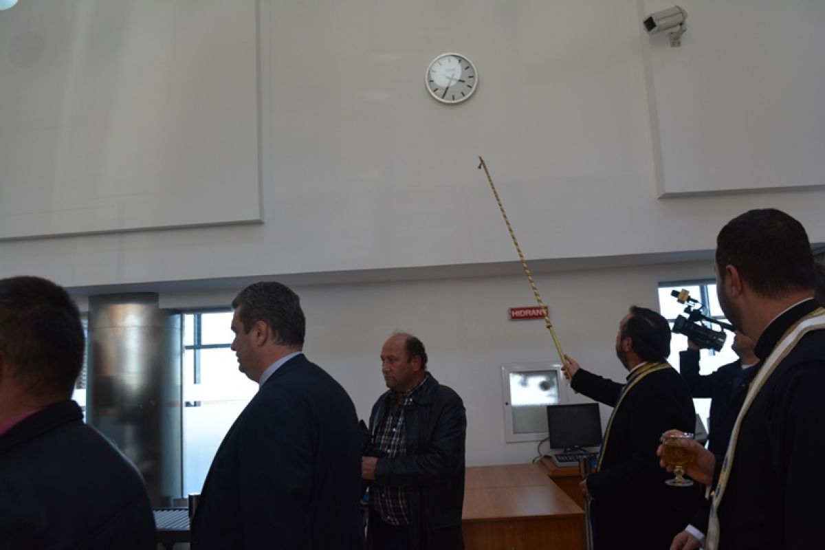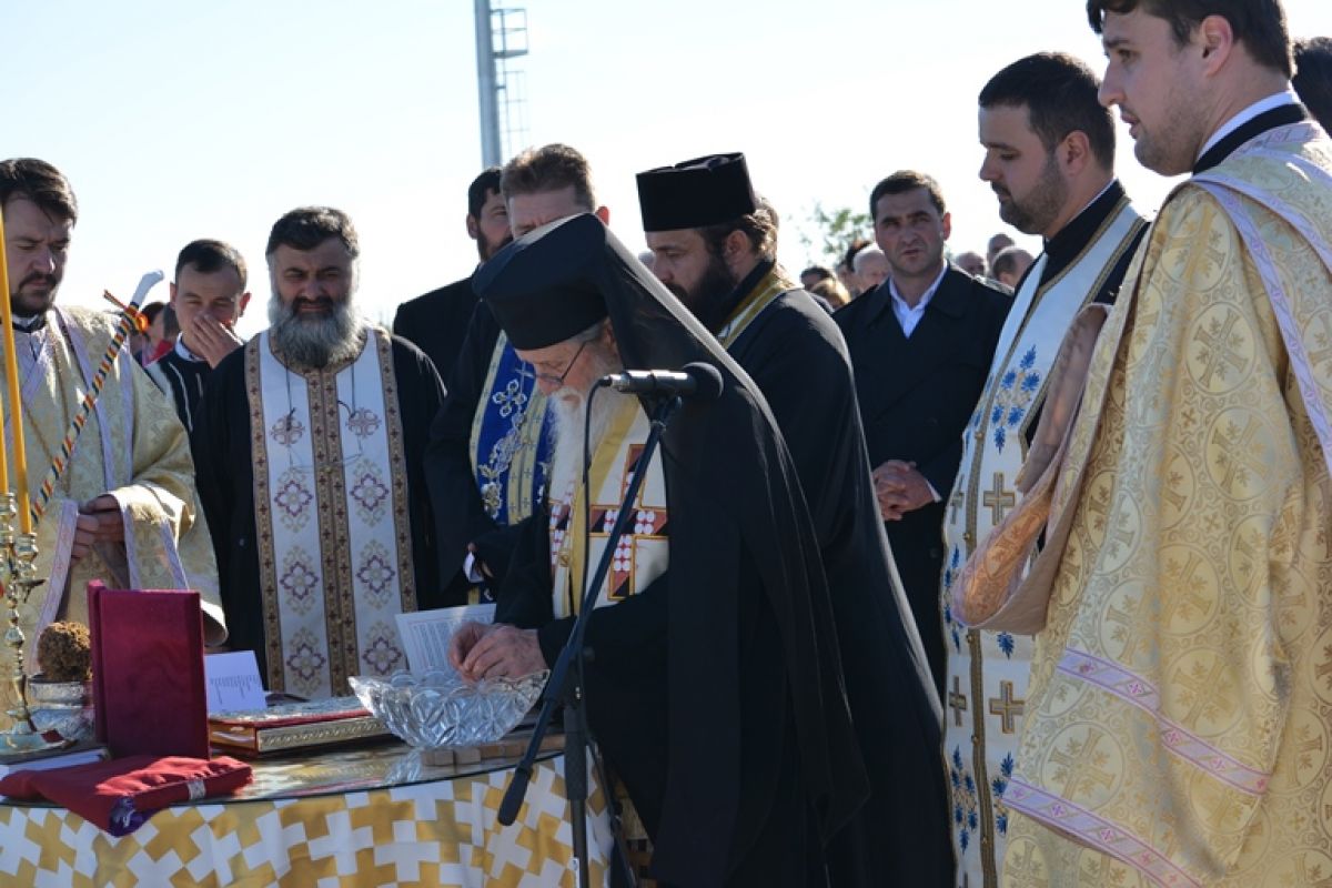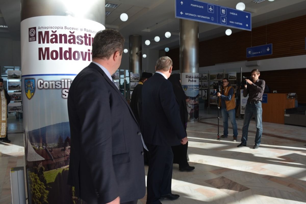 A fost oficiat chiar pe platoul dintre terminal și pistă de către un sobor de preoți condus de IPS Pimen, arhiepiscop al Sucevei și Rădăuților.