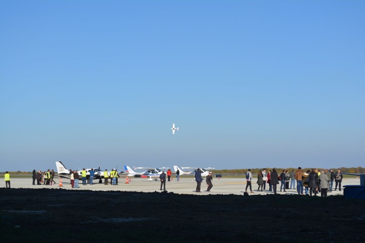 Sfințirea s-a încheiat cu o demonstrație de zbor efectuată cu un avion de mici dimensiuni, care a efectuat mai multe manevre dificile chiar deasupra mulțimii strânse lângă terminal, unde au fost expuse mai multe avioane particulare. De la manifestare nu a lipsit nici un tort adus de angajații Aeroportului Salcea.