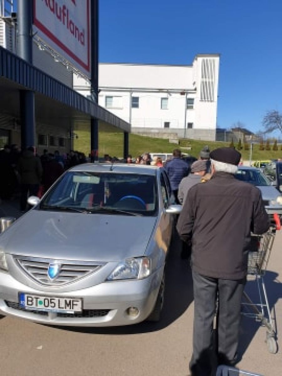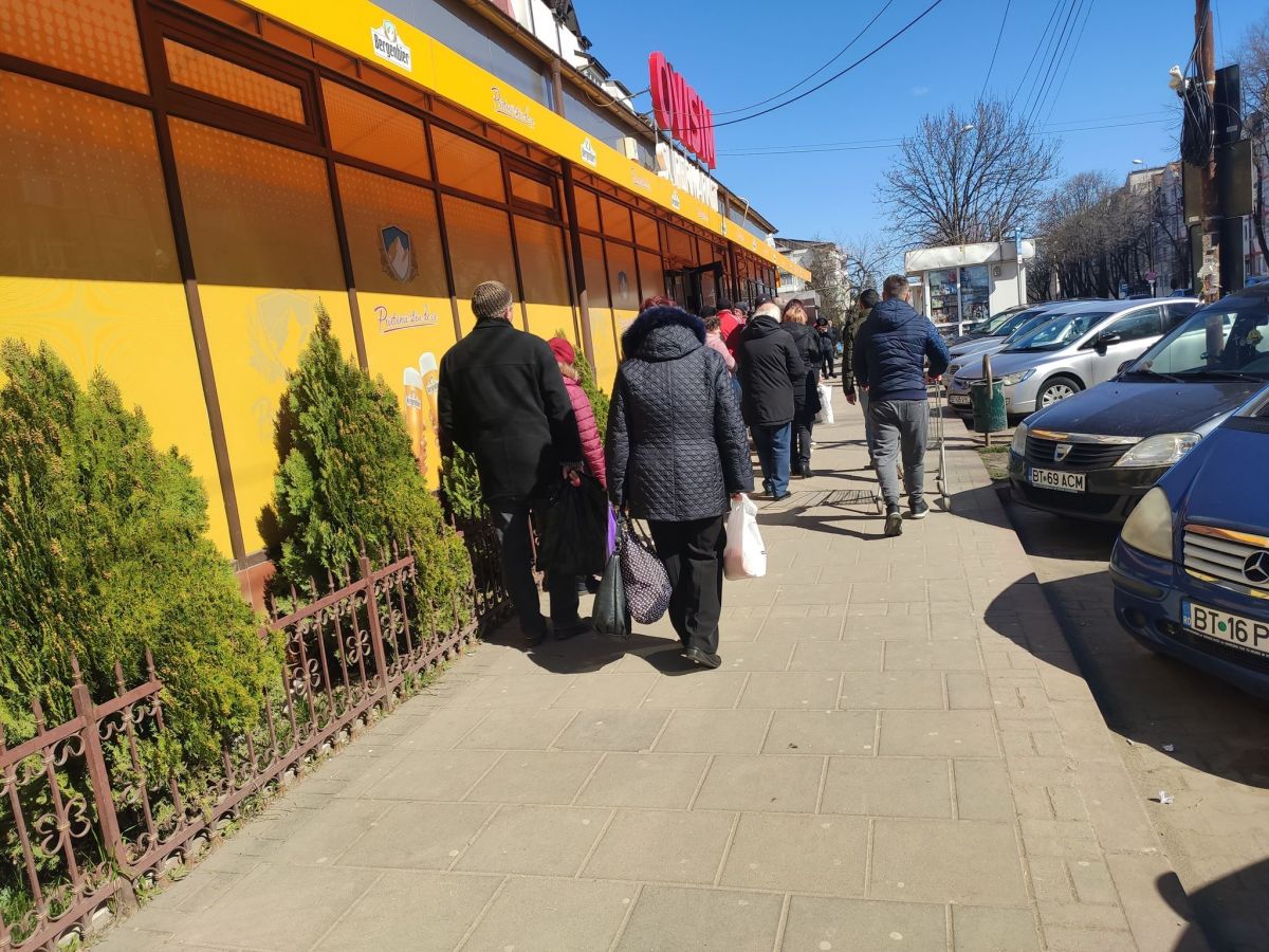 Este nebunie în marile magazine din Botoșani și nu numai. Botoșănenii au ieșit să-și facă provizii astfel că se așteaptă și zeci de minute la coadă.
