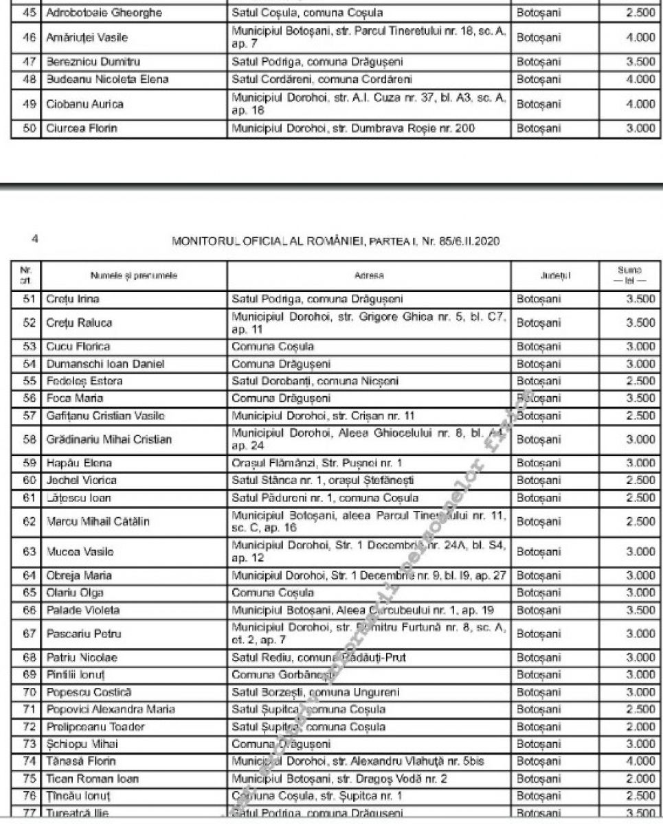 Vezi LISTA mai jos cu ajutoarele acordate la Botoșani: