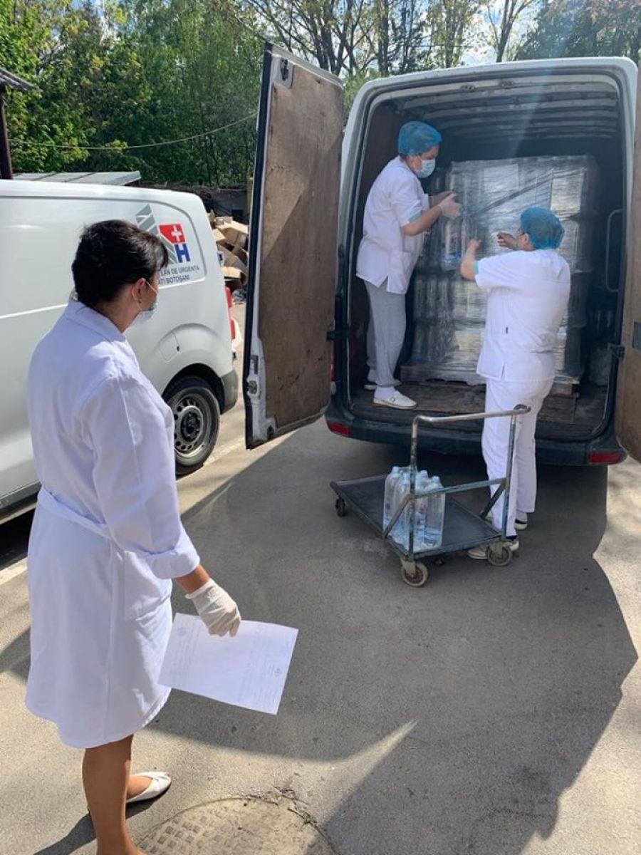 Două mii de litri de apă, măști, mănuși și substanțe dezinfectante au ajuns, vineri, la medicii din prima linie a Urgențelor de la Botoșani.