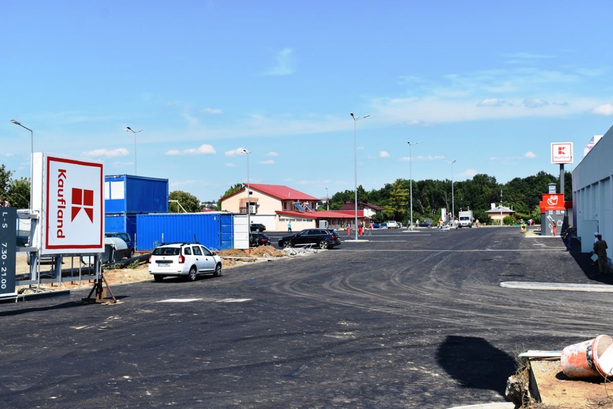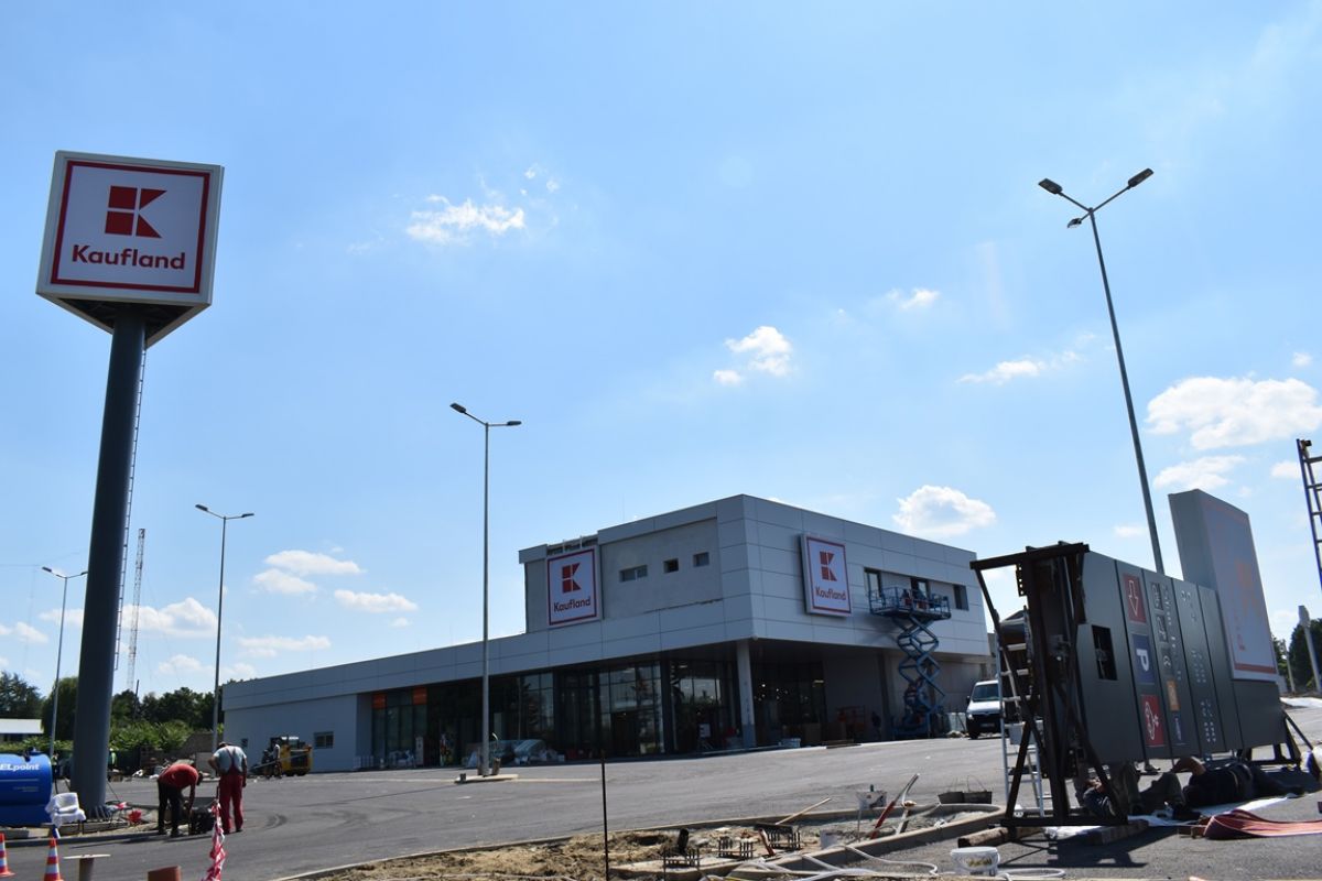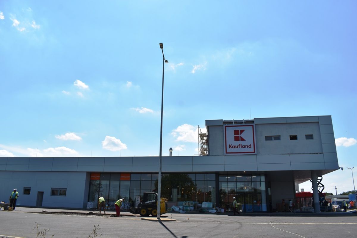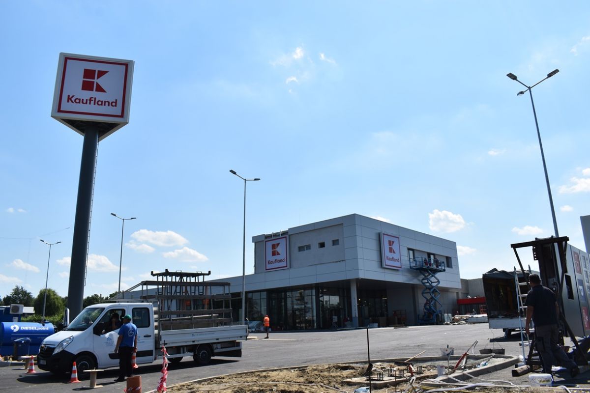 La mai puțin de un an de atunci, noul Kaufland este aproape gata. Construcția propriu-zisă s-a finalizat, iar vineri, 24 iulie, peste 40 de muncitori lucrau în afara centrului comercial cu precădere la amplasarea panourilor publicitare și la sistematizarea parcării.
