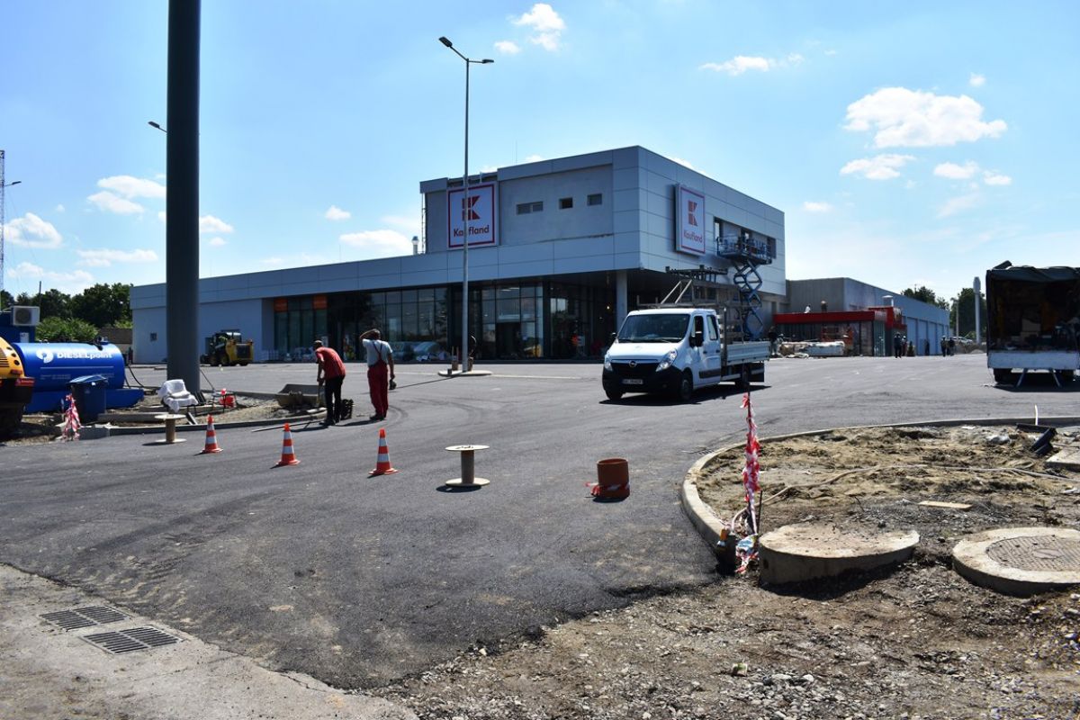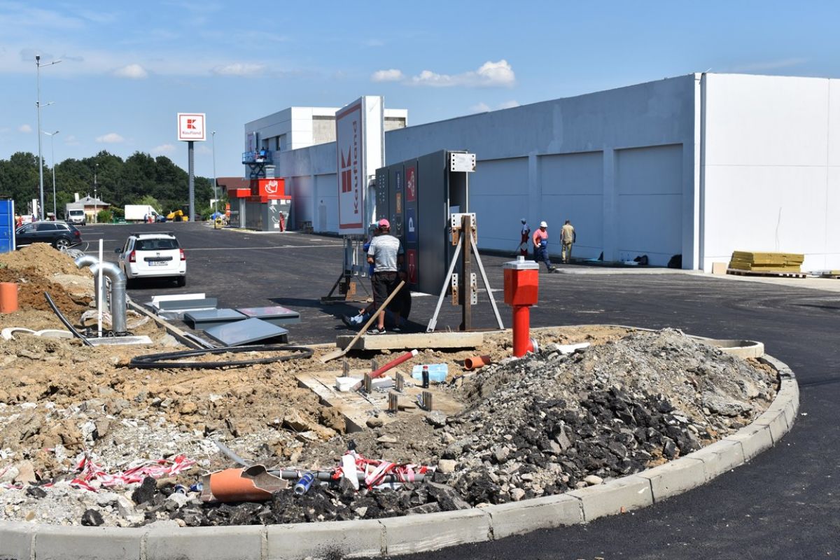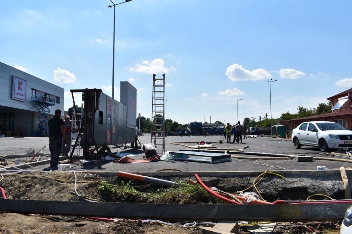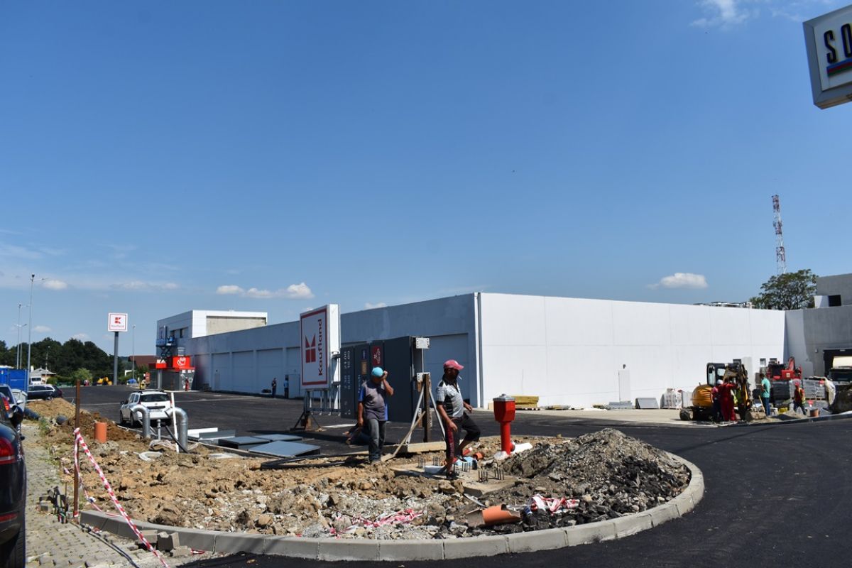 La mai puțin de un an de atunci, noul Kaufland este aproape gata. Construcția propriu-zisă s-a finalizat, iar vineri, 24 iulie, peste 40 de muncitori lucrau în afara centrului comercial cu precădere la amplasarea panourilor publicitare și la sistematizarea parcării.