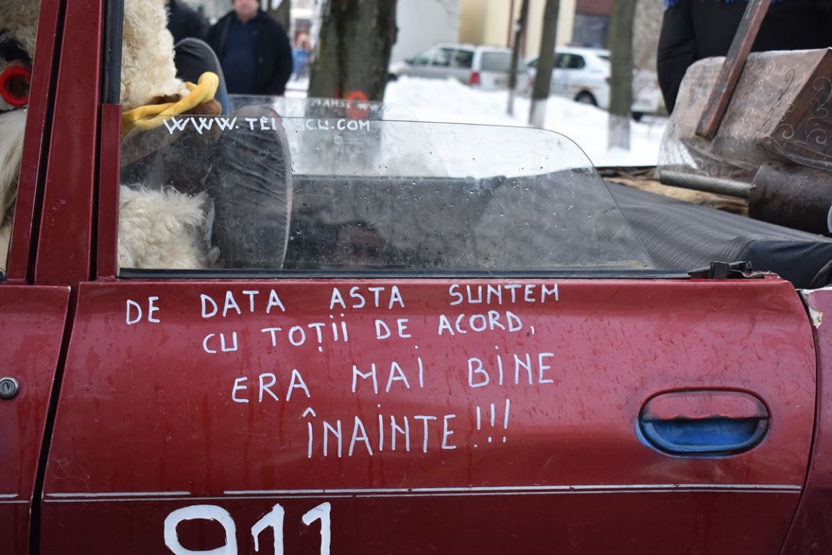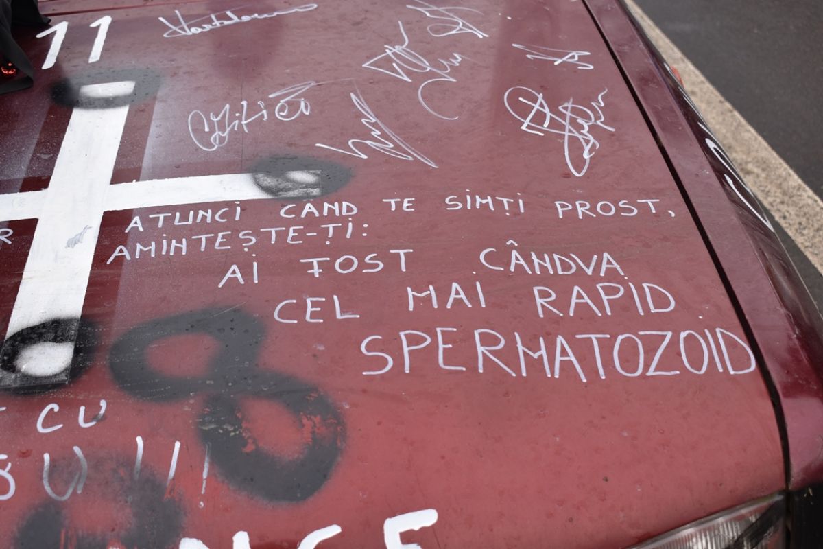 Automobilele aveau inscripții care mai de care mai amuzante: ”Uauuu, ce an a fost săptămâna aceasta!”, ”Atunci când te simți prost, amintește-ți: ai fost cândva cel mai rapid spermatozoid”, ”Urăsc violența dar îmi place când mă lovește norocul”, ”La următoarele alegeri votați Ali Baba, are numai 40 de hoți în subordine”, ”De data asta suntem cu toții de acord: era mai bine înainte”.