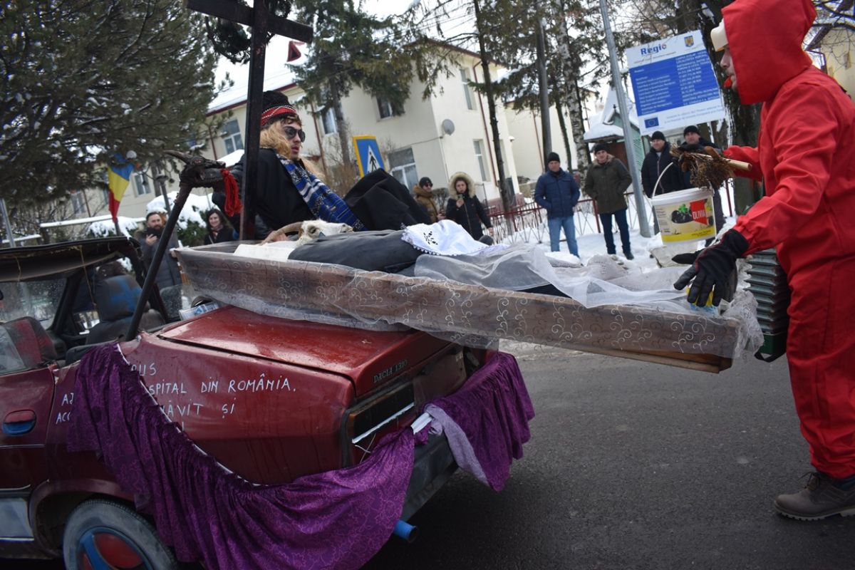 Da, după toate invențiile din anii precedenți, pe 31 decembrie 2021 bandele de mascați au creat și un cortegiu funerar cu sicriu cu tot, în care decedatul era puțin... încornorat. Și părea a fi persoană importantă fiindcă pe cruce scria ”Arafat decedat”.