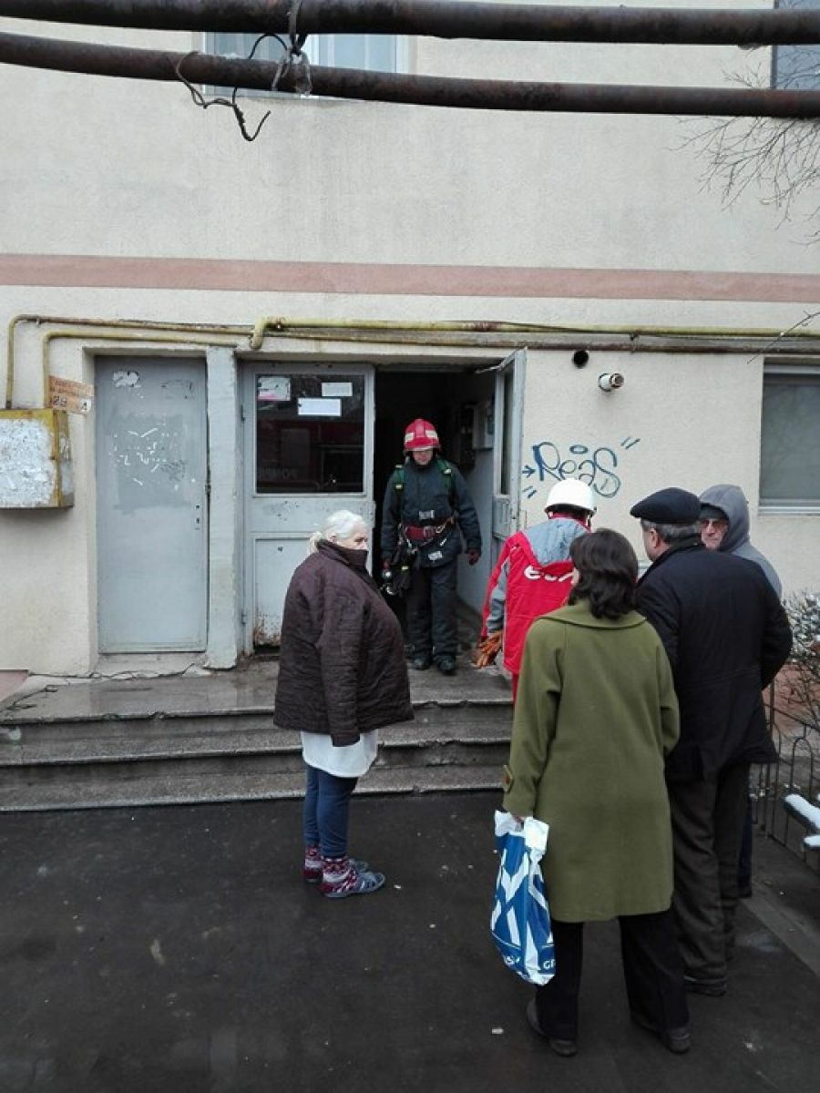 Mai mulți locatari îngrijorați ieșiseră în fața blocului.