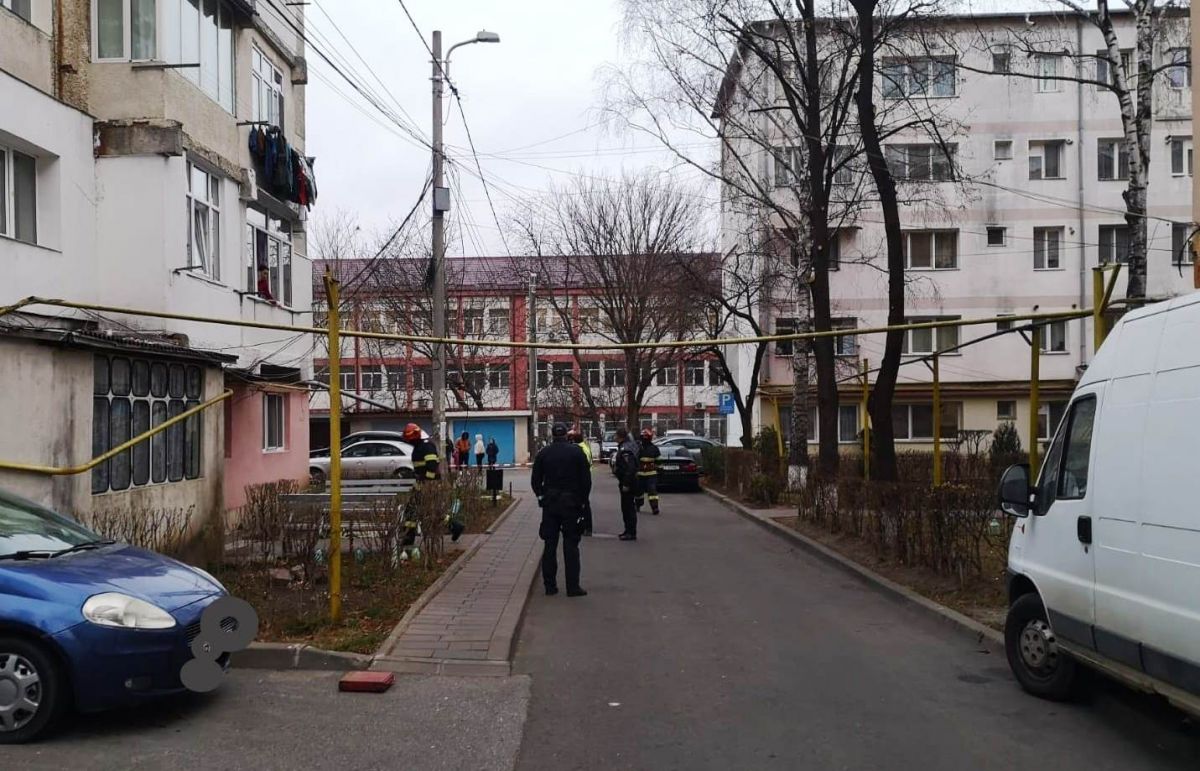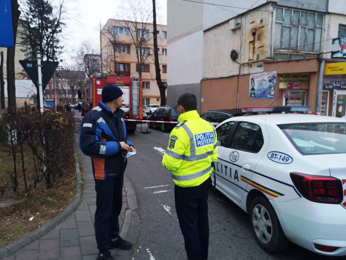 I-au chemat să asigure măsurile PSI deoarece în zonă se simțea un miros puternic de gaz, după ce o conductă de gaze naturale a fost ruptă. O autoutilitară a agățat conducta, care trece deasupra străzii.