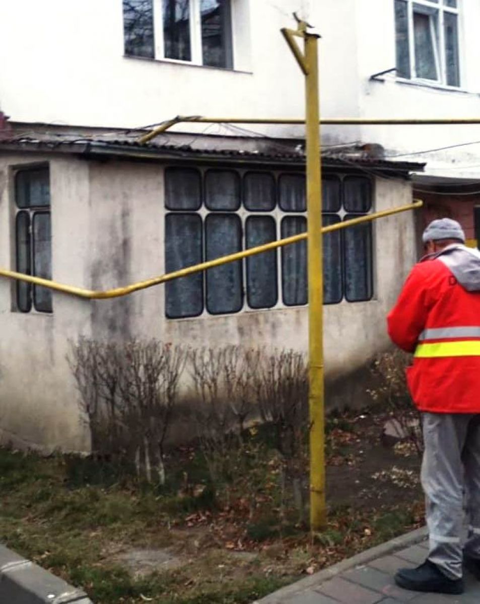 O echipă de muncitori a furnizorului de gaze intervine pentru remedierea avariei.