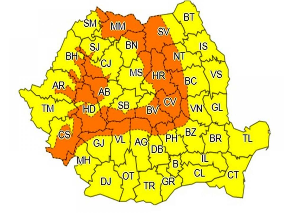 Administrația Națională de Meteorologie a emis o avertizare Cod Galben și Cod Portocaliu de vânt intens, disconfort termic, precipitații mixte în nordul, nord-vestul și centrul ţării.