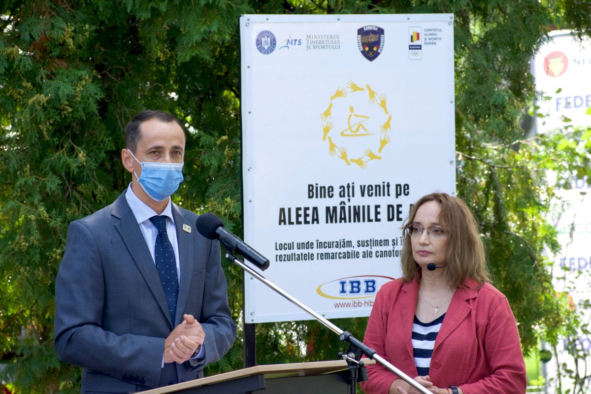 “Compania IBB-HIB este onorată să fie azi alături de Federația Română de Canotaj și să sărbătorească medaliații olimpici ai României la Canotaj. Felicităm acești admirabili sportivi ai României și suntem mândri că facem parte din aceeași generație. Doamnă Elisabeta Lipă, sunteți azi deschizătoare de drumuri, deschideți această alee a mâinilor de aur. Sperăm ca aceste tinere valori să se întoarcă acasă cu cât mai multe medalii, ca să umplem această alee și să ne mândrim cu cât mai multe nume de campioni”.
