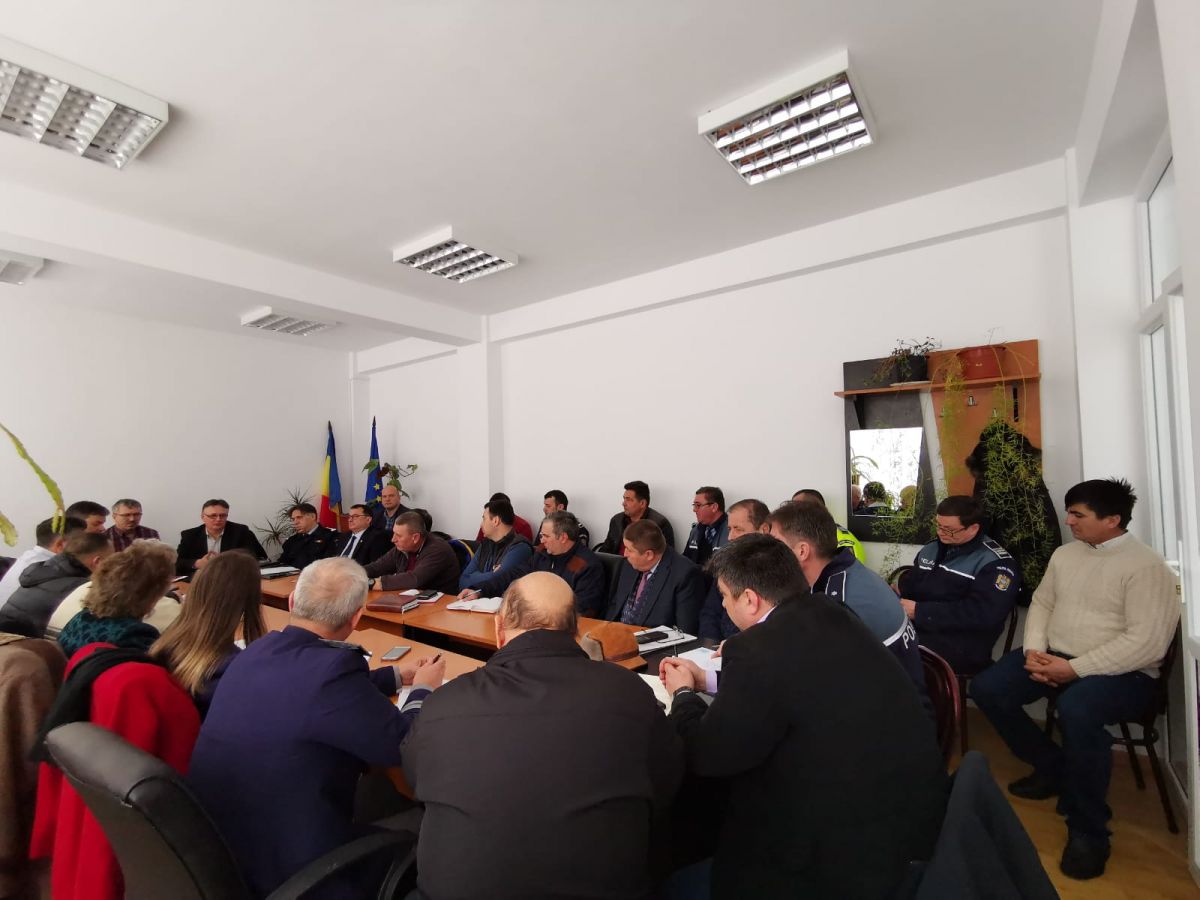 Prefectul Dan Şlincu a convocat astăzi membrii Unităţilor Locale de Sprijin ale Comitetului Local pentru Combaterea Bolilor din zona aflată sub incidenţa restricţiilor impuse de confirmarea apariţiei Pestei Porcine Africane pe teritoriul judeţului.