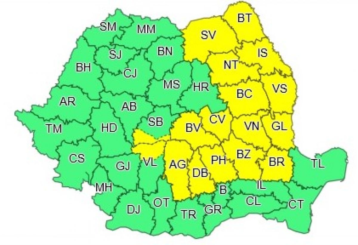 Administrația Națională de Meteorologie a emis în această dimineață o avertizare de tip Cod Galben pentru județul Botoșani.