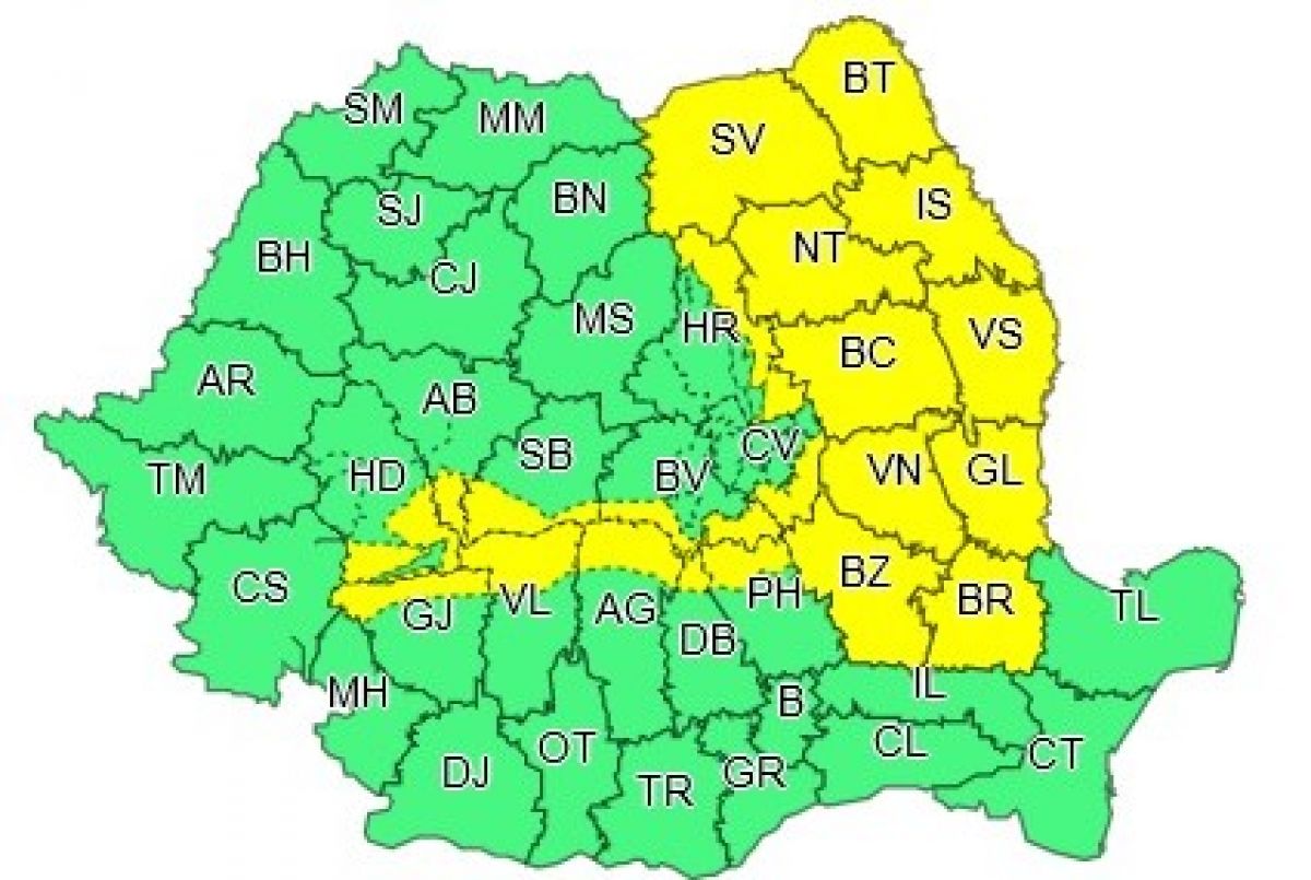 Meteorologii au emis o atenționare de tip Cod Galben pentru județul Botoșani.