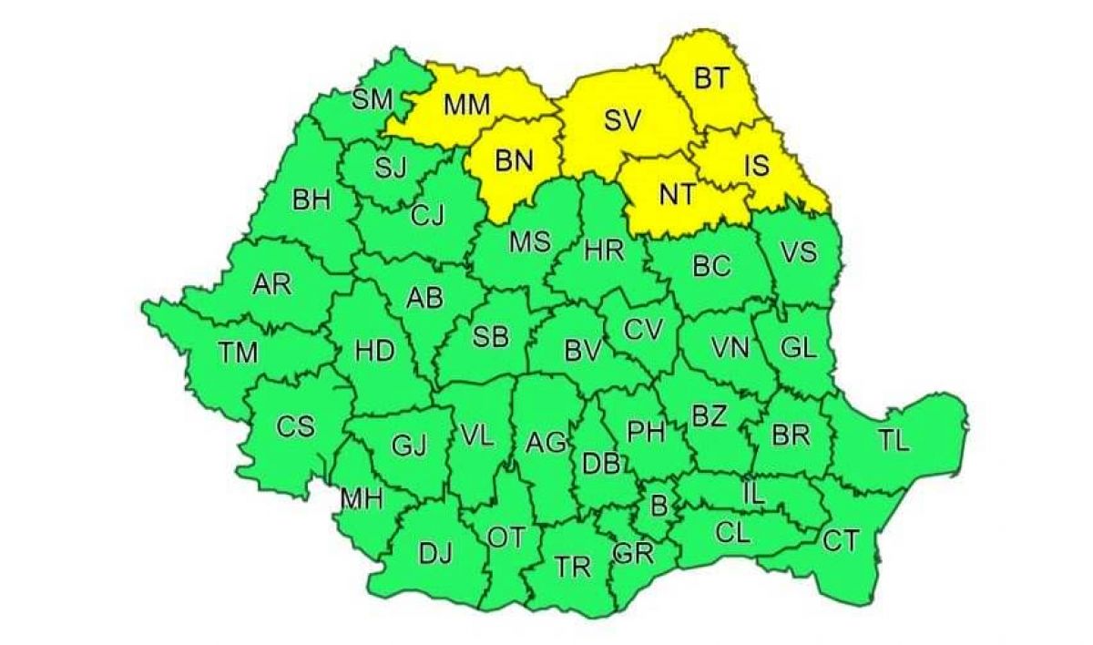 Astăzi, între orele 15.00 - 22.00, județul Botoșani se va afla sub o atenționare meteorologică tip cod galben de instabilitate atmosferică. Se anunță ploi, care vor avea și caracter torențial, descărcări electrice, vijelii și grindină.