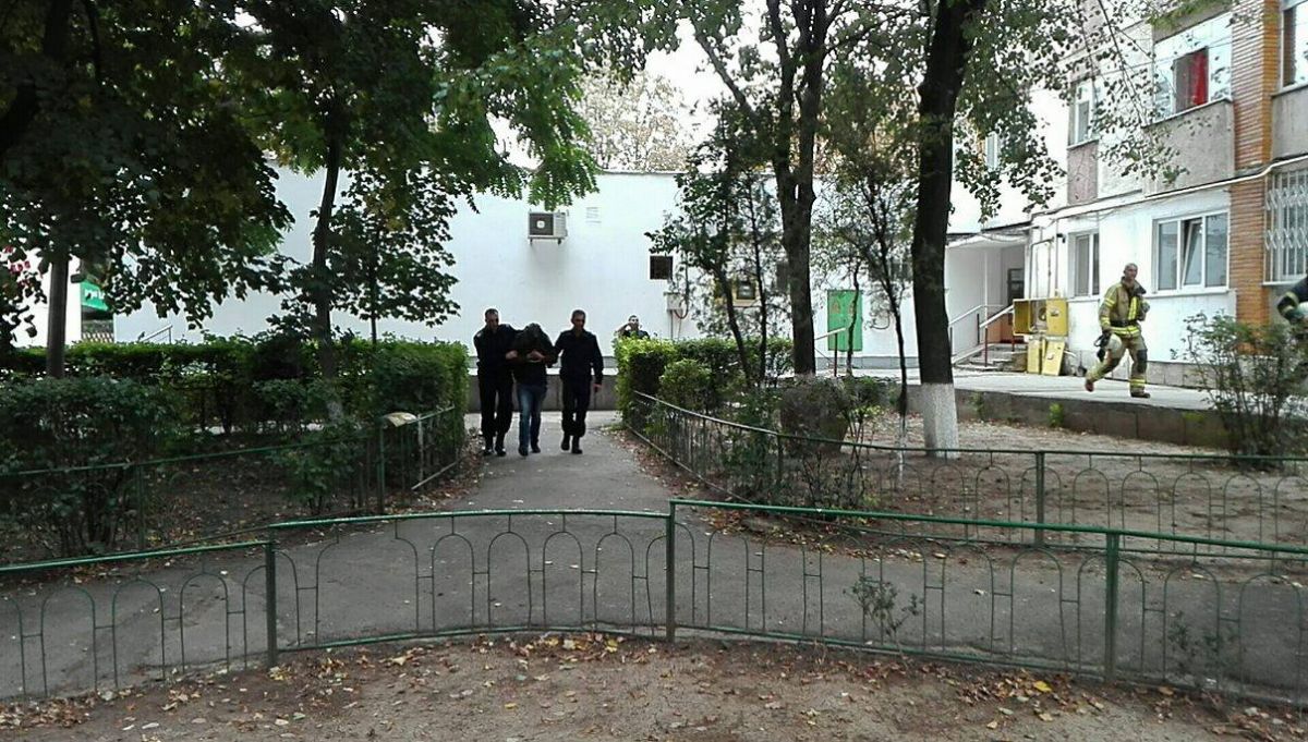 Nu și-a pus în practică intenția pentru că a fost imediat coborât de echipajele de jandarmi. A fost scos din scara blocului având geaca în cap cu scopul de a și proteja figura și a fost introdus în duba Jandarmeriei.