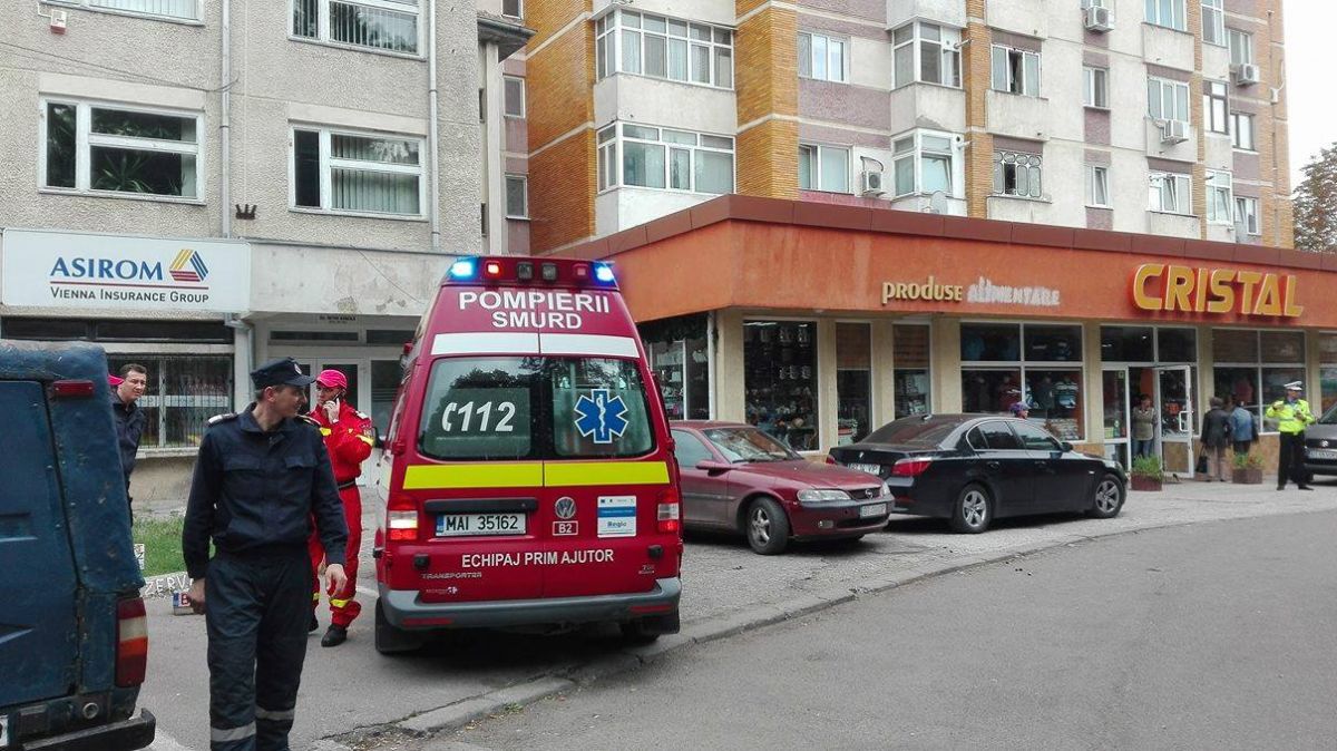 Desfășurare de forțe și la blocul turn de pe Pietonalul Unirii. Acolo un bărbat s-a urcat pe acoperișul imobilului cu intenția de a se arunca în gol.
