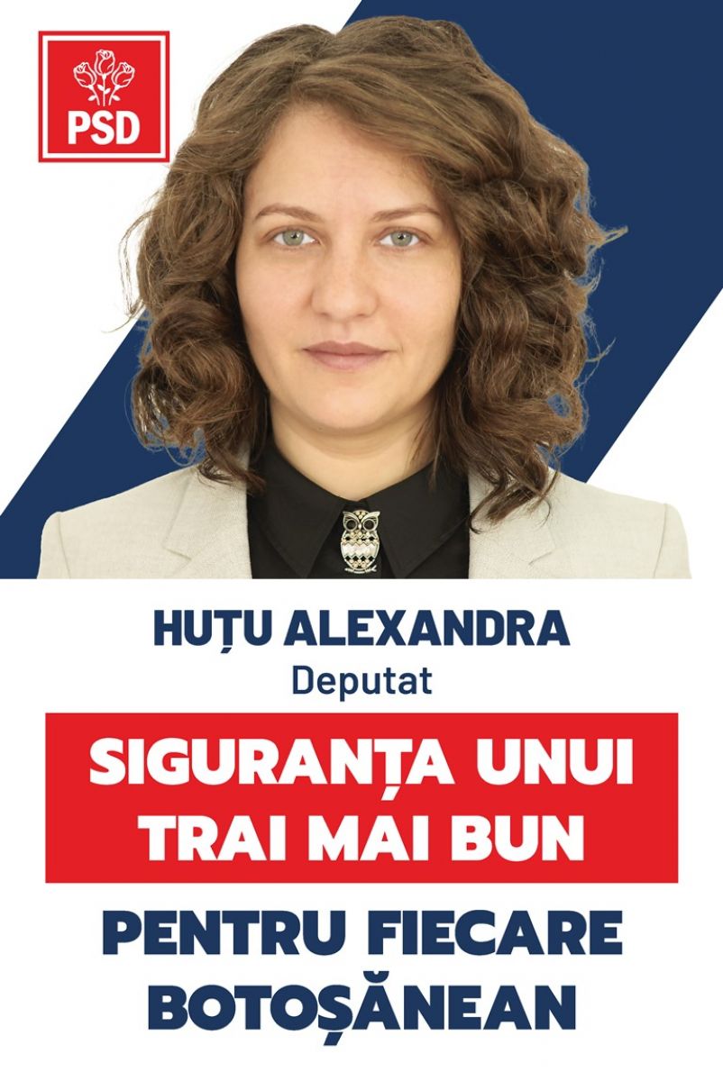 „Guvernul Orban nu a făcut nimic pentru tinerii din generația actuală de elevi, pentru creșterea accesului la educație și sănătate, pentru stimularea creării de locuri de muncă pentru absolvenții de licee, școli profesionale și facultăți. Sunt și voi fi o voce persuasivă și fermă în apărarea și asigurarea drepturilor pentru tineri. Candidez pentru un loc în Parlamentul României pentru că societatea are nevoie de ideile și energia tinerilor care sunt interesați să aducă plus-valoare în comunitățile pe care le reprezintă. Este timpul ca tinerii să participe la decizia publică, să nu mai fie spectatori. Tinerii botoșăneni trebuie să fie actori ai democrației, cu roluri active atât în viața socială, în politică, dar și în piața muncii. Numai o guvernare PSD poate să asigure programele și resursele materiale digitale, conectare internet, realizarea unui sistem integrat de e-learning pentru toți copiii și tinerii care au nevoie de educație”, a subliniat Alexandra Huțu.