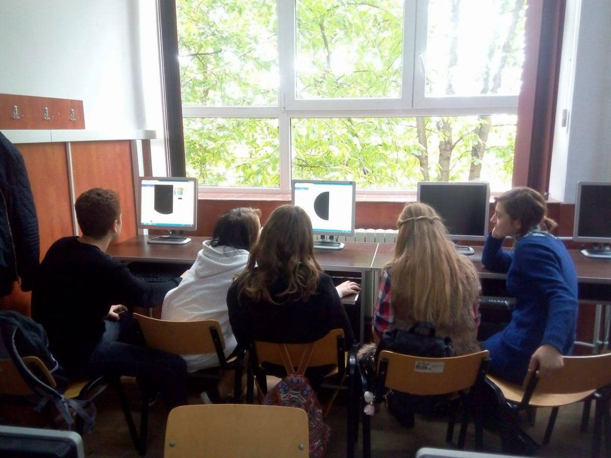 De partea cealaltă, în laboratorul de informatică, alţi elevi au învăţat despre geogebră. Însoţit de explicaţiile profesoarei Beatrice Tiron, un software matematic dinamic pentru toate nivelurile de educaţie care combină geometria, algebra, foile de calcul, graficele şi statistica a trezit uşor interesul tinerilor care sunt, acum mai mult ca niciodată, pasionaţi de lumea virtuală, se arată într-un comunicat de presă venit pe adresa redacției.