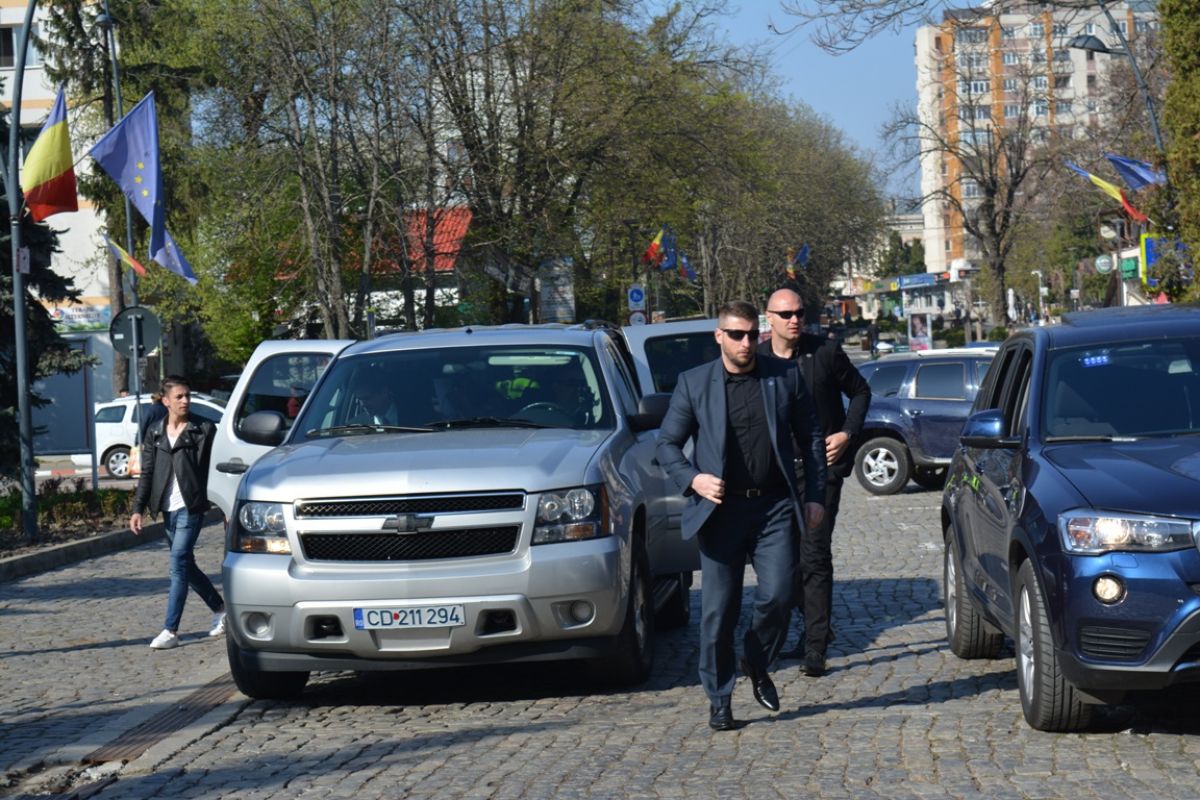 Sosirea oficialului american a părut desprinsă dintr-un film de la Hollywood: maşini blindate cu girofar, bodyguarzi înalţi şi puternici cu ochelari de soare şi măsuri sporite de securitate.