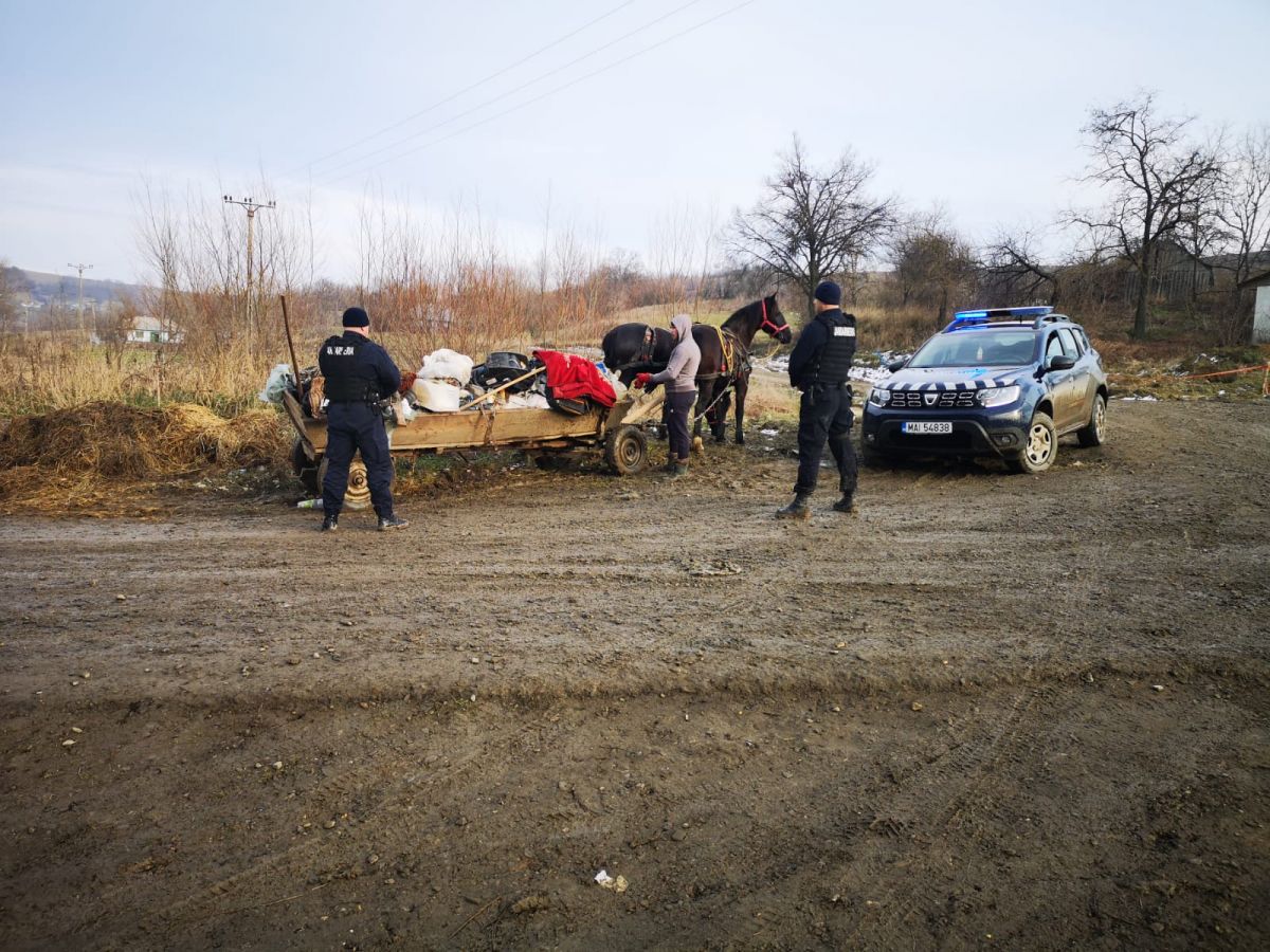 Pentru că gunoiul depozitat ilegal nu putea rămâne pe câmp, bărbatul l-a încărcat înapoi în atelaj și l-a transportat, așa cum trebuia de la bun început, într-un loc de depozitare amenjat corespunzător, nu înainte însă de a semna procesul verbal de constatare a contravenției.