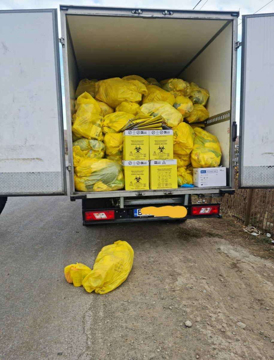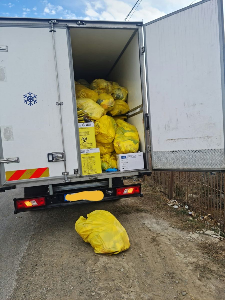 Organele de control au solicitat deschiderea compartimentului marfă, pentru verificarea conformării cu legislația de mediu în vigoare. La deschiderea ușilor, saci încărcați cu deșeuri medicale au căzut pe șosea, întrucât aceștia erau depozitați atât pe pardoseală, cât și deasupra europubelelor de PVC.