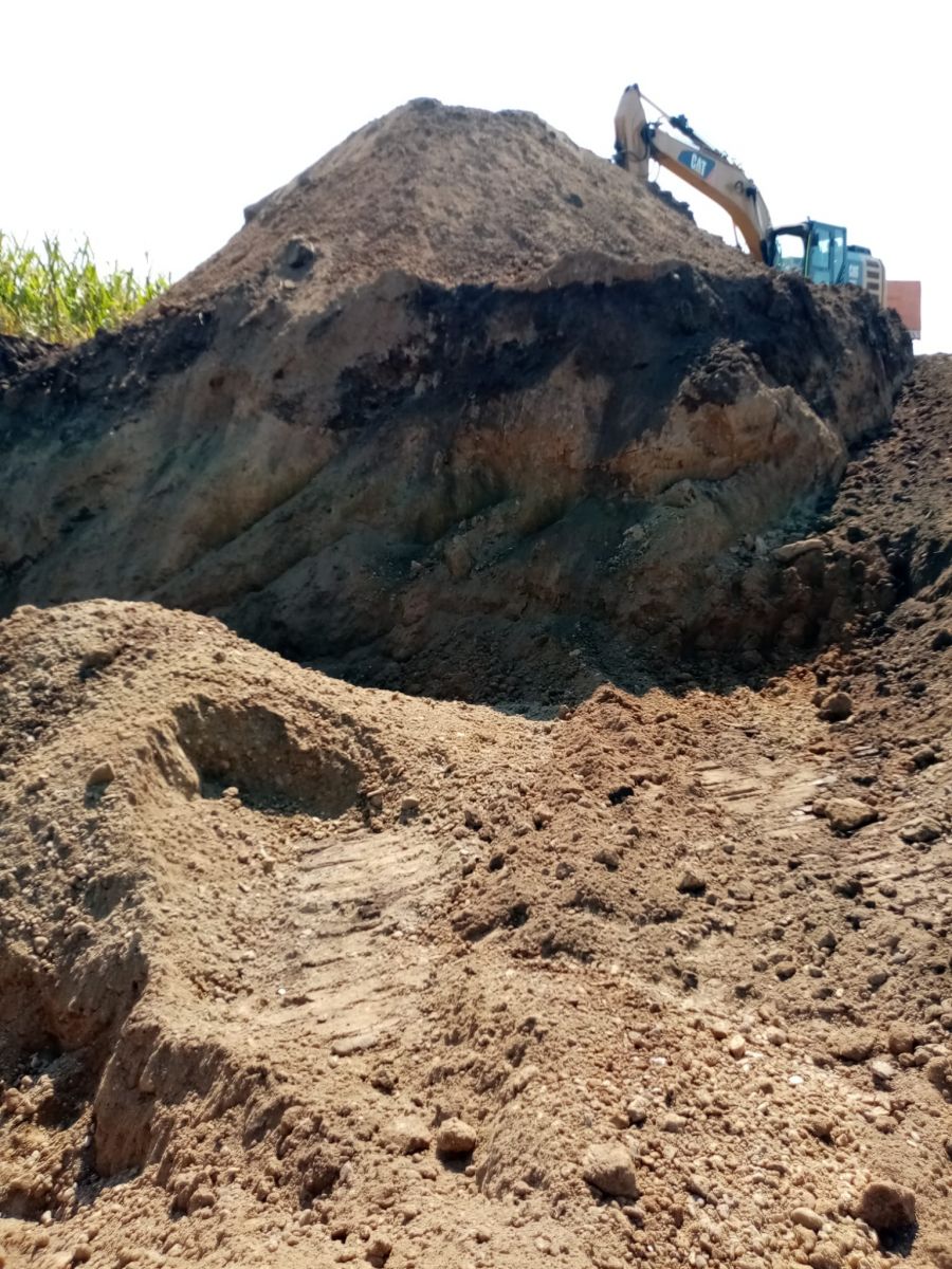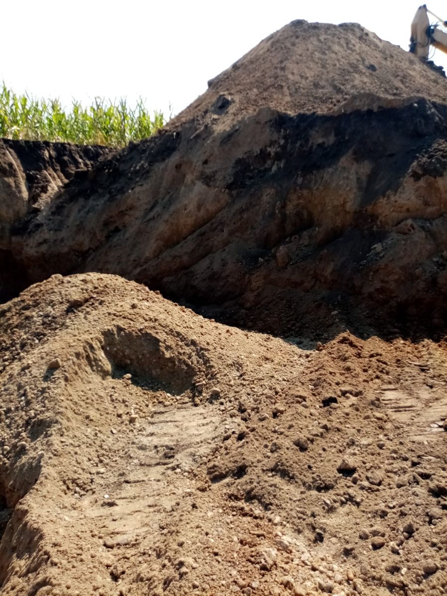Pe amplasament a fost identificat un excavator cu senile și cupă tip și un depozit temporar de agregate minerale. S-a identificat decopertarea unei zone de exploatare și depozitarea solului vegetal pe teren dat spre folosință conform contractului de locațiune, în imediata vecinătate a suprafeței exploatate.