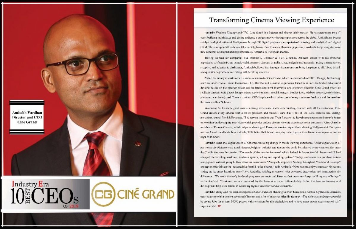 Amitabh Vardhan, director și CEO Cine Grand, a primit certificatul de onoare din partea renumitei reviste americane "Industry ERA", fiind numit printre cei mai buni 10 CEO în anul 2019. Certificarea vine ca o încununare a unei cariere de succes de peste 17 ani în industria cinematografelor (https://www.industry-era.com/magazine/Ceo-2019/).