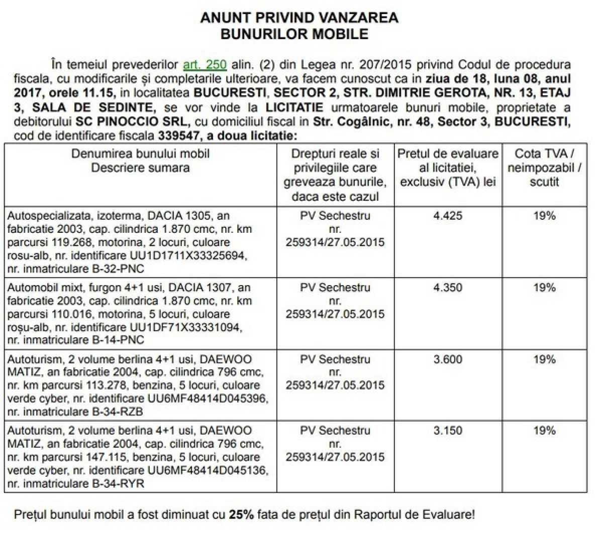 ANAF scoate la licitaţie masinile unor firme cu probleme financiare.