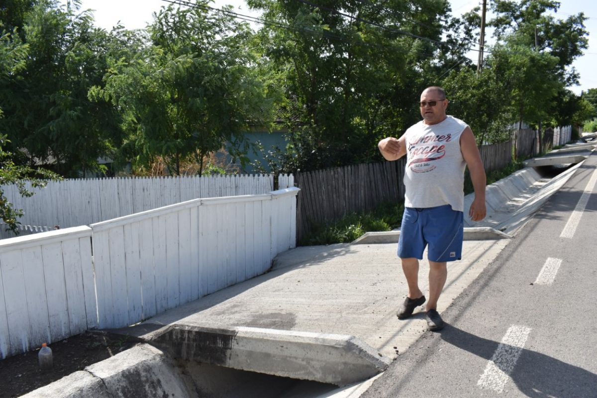 „Acesta nu este un șanț colector, pentru că este celălalt, care preia apele pluviale de sus. Acesta s-a făcut inutil aici, în bătaie de joc. Sunt persoane cu dizabilități, dacă e alunecos caroabilul, încearcă să se deplaseze. S-a dus acolo, acolo rămâne. De ce e bătaia asta de joc? Trebuia să-l lase așa cum a fost”,