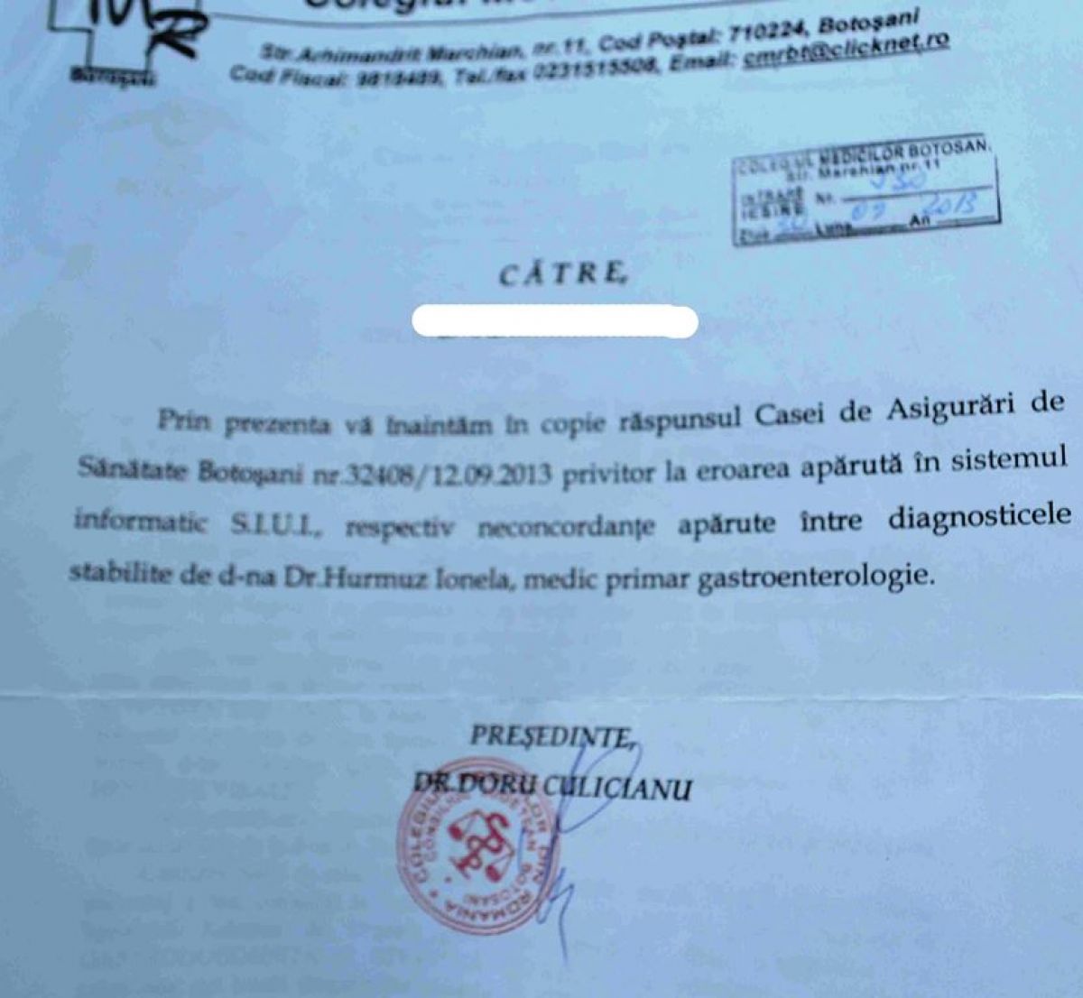 Cu biletul de trimitere în mână, botoşăneanul s-a dus atunci la spital. A făcut nişte analize la Cabinetul de Gastroenterologie şi a aflat că suferea la stomac. Avea gastrită, o boală comună şi fără nici un pericol. A luat recomandarea de tratament scrisă de medic şi s-a dus acasă. A uitat de incident doi ani de zile. În 2012 însă a avut din nou treaba la spital. De data aceea, la urgenţe. Acolo a rămas perplex când un cadru medical l-a întrebat de când are hepatita C. În plus, avea şi ulcer duodenal. Confuz, a început să sune şi să pună întrebări. A cerut lămuriri, rând pe rând, de la conducerea spitalului, de la Casa de Asigurări sau de la Colegiul Medicilor. După mai multe adrese şi vizite la Serviciul Informatic de la „Mavromati”, a aflat ce se întâmplase. Cadrul medical care îl diagnosticase în 2010 cu gastrită, făcuse atunci o greşeală de codificare. Când a introdus diagnosticul în calculator, a greşit codul şi în loc de bolnav de gastrită l-a trecut bolnav de hepatită C si ulcer duodenal. După ce a aflat povestea a început să întrebe cum poate scăpa de boala de care nu era bolnav. Însă nici acum nu a reuşit. Mai întâi a primit răspuns de la CAS Botoşani.