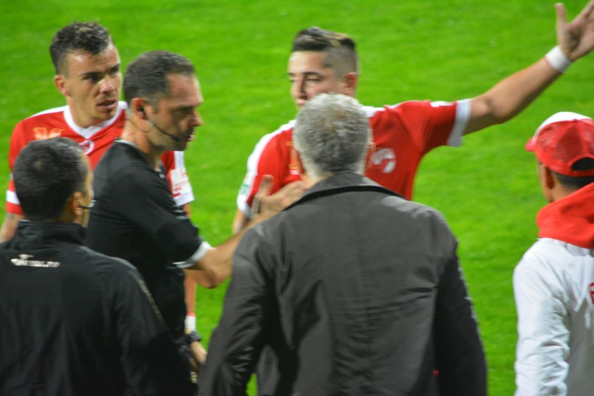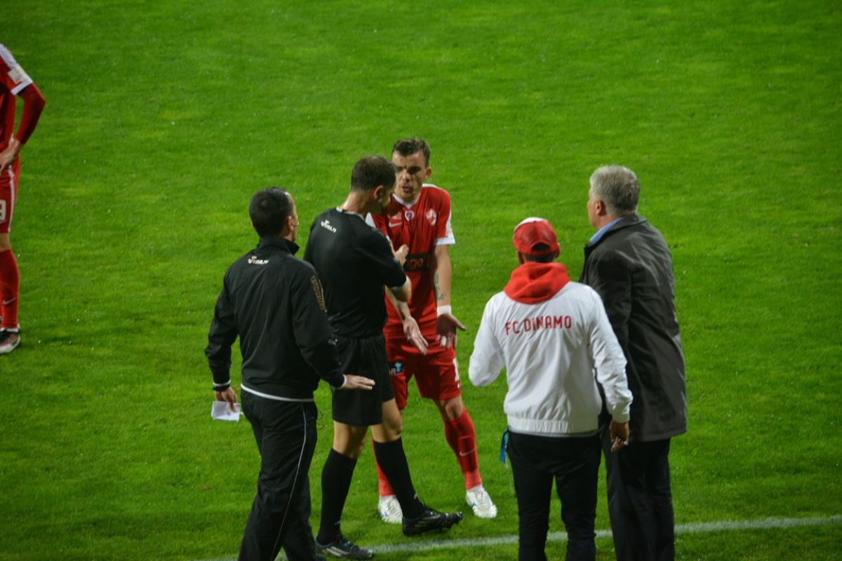 Fundaşul stânga al formaţiei din Şoseaua Ştefan cel Mare a avut o intervenţie dură asupra lui Golofca, scoţându-l în afara terenului de joc. Deşi faultul s-a produs chiar în apropierea sa, tehnicianul alb-roşilor a ţipat zeci de secunde la arbitrul Lucian Rusandu. Acesta s-a dus la antrenor să-l liniştească, însă Ioan Andone a continuat protestele. Cu toate acestea, „cavalerul fluierului” s-a mulţumit doar să discute cu antrenorul, fără să ia vreo măsură de sancţionare.