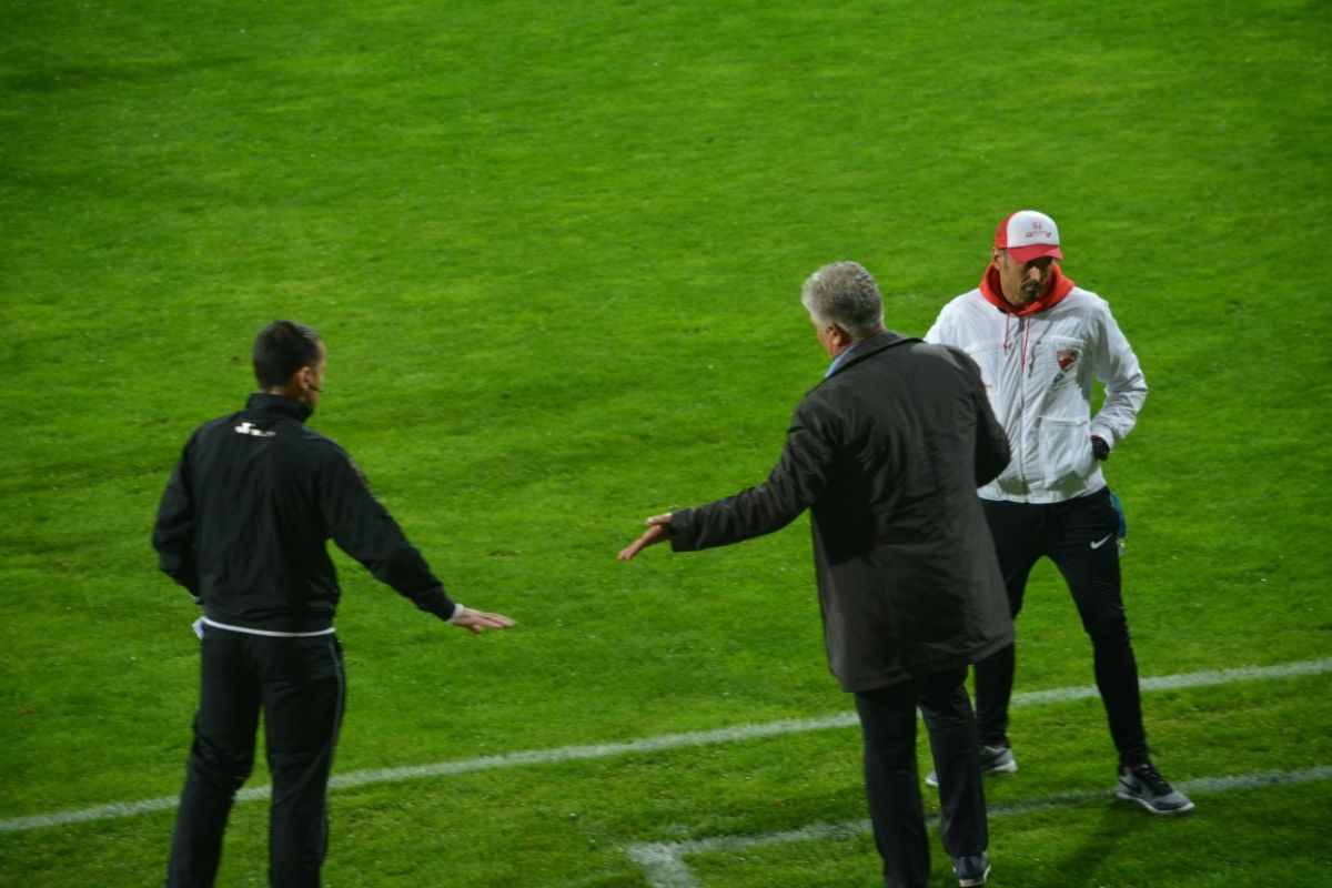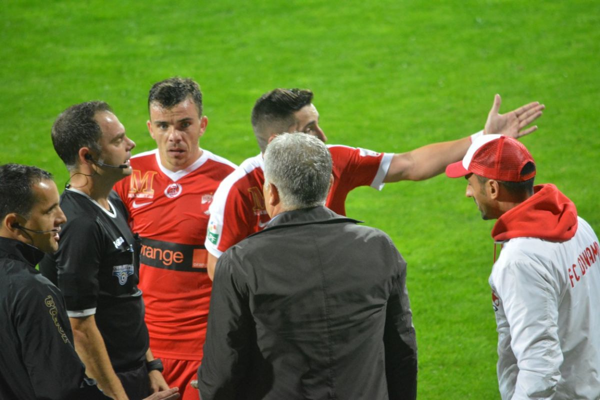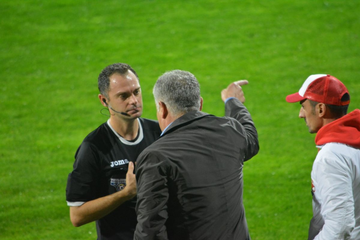 Antrenorul oaspeţilor şi-a pierdut cumpătul după prima jumătate de joc. Ioan Andone a protestat vehement după ce Steliano Filip a primit cartonaş galben.