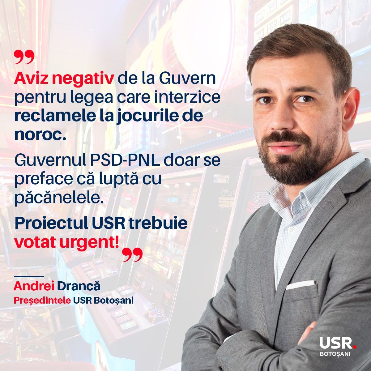 USR cere PSD și PNL să scoată de la sertar, în Parlament, și să voteze inițiativele legislative ce-și propun reducerea fenomenului dependenței de jocuri de noroc.