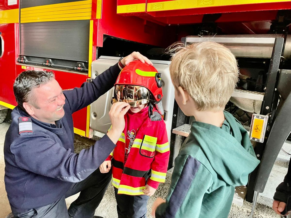 Ca bucuria lui să fie deplină, cât timp a vizitat subunitatea, a purtat una dintre căștile de protecție pe care pompierii le folosesc în misiuni.