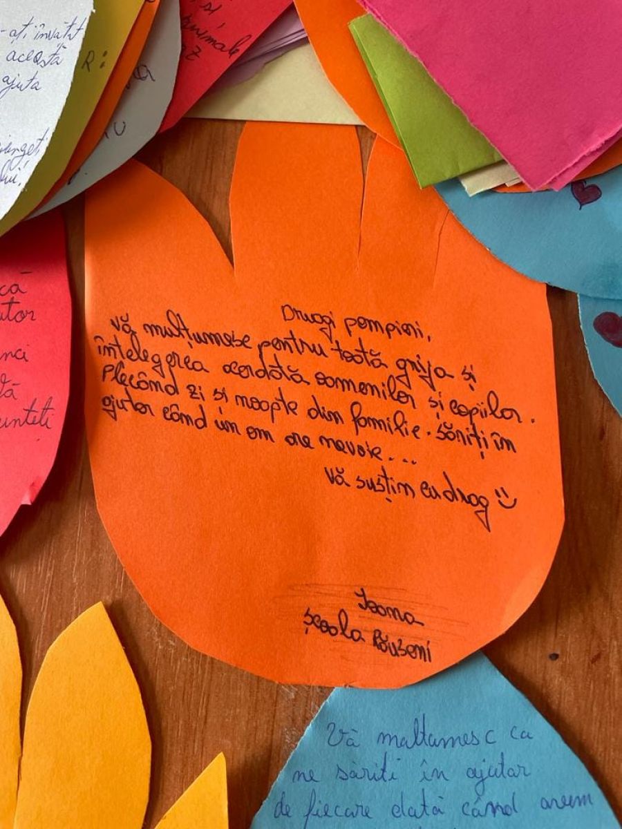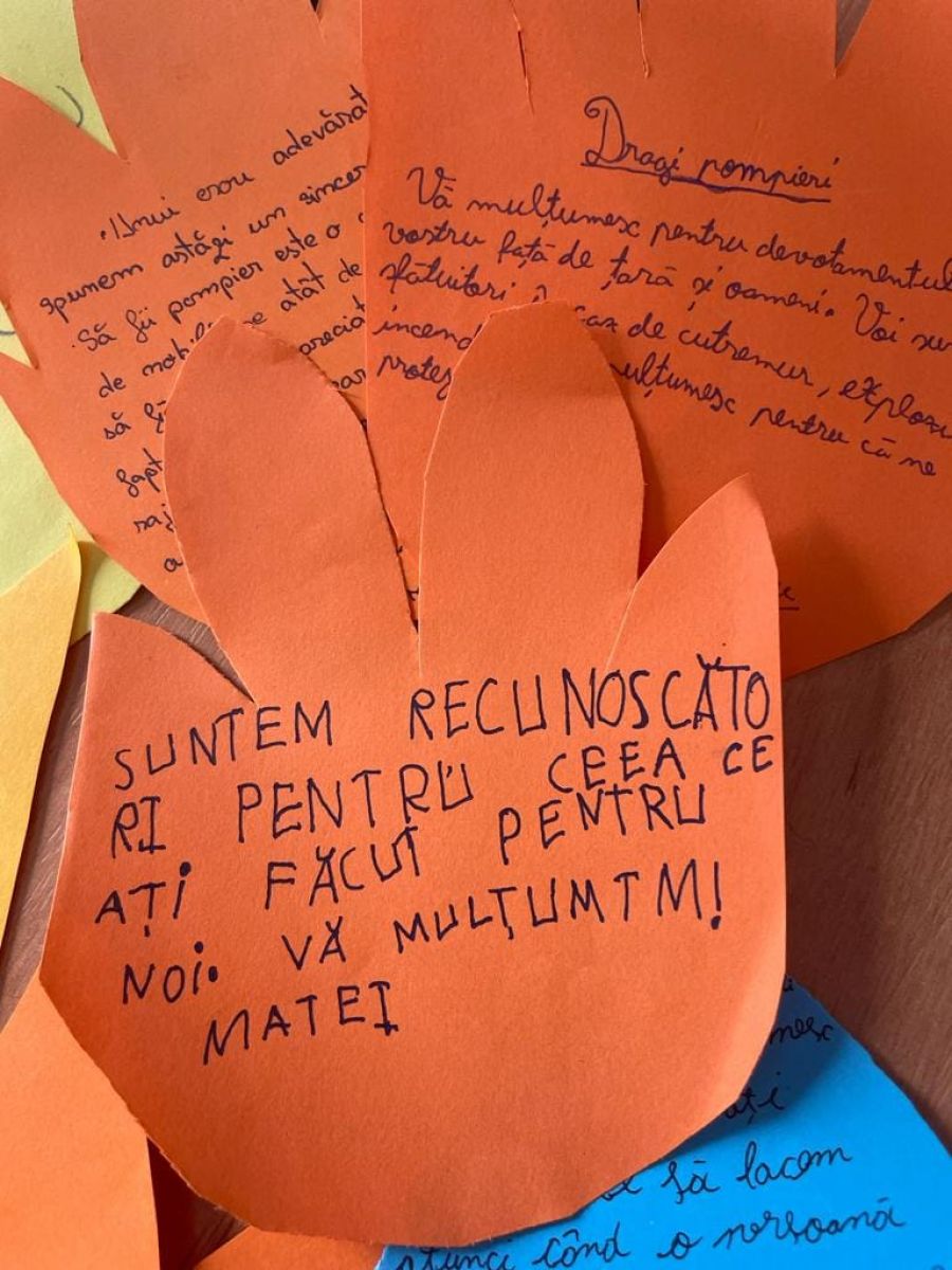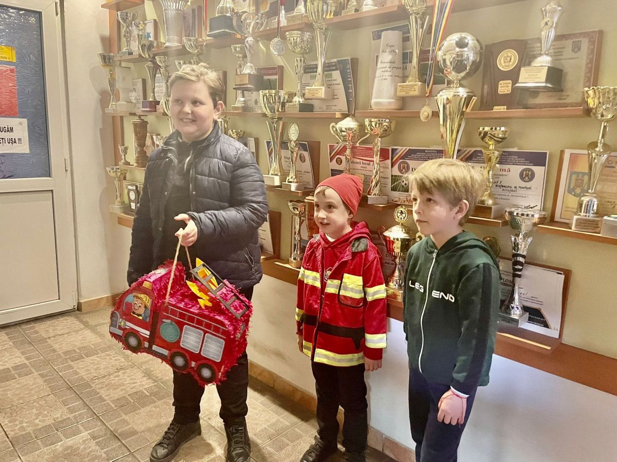 Cu siguranță, nici salvatorii botoșăneni nu vor uita această zi. Andrei le-a adus o mașină de pompieri, confecționată din carton, plină cu mesaje și dulciuri. A reușit să adune peste 50 scrisori de la elevii din clasele pregătitoare și a II-a de la Școlile Gimnaziale din Răuseni și Albești, cu ajutorul celor doi prieteni care l-au însoțit.